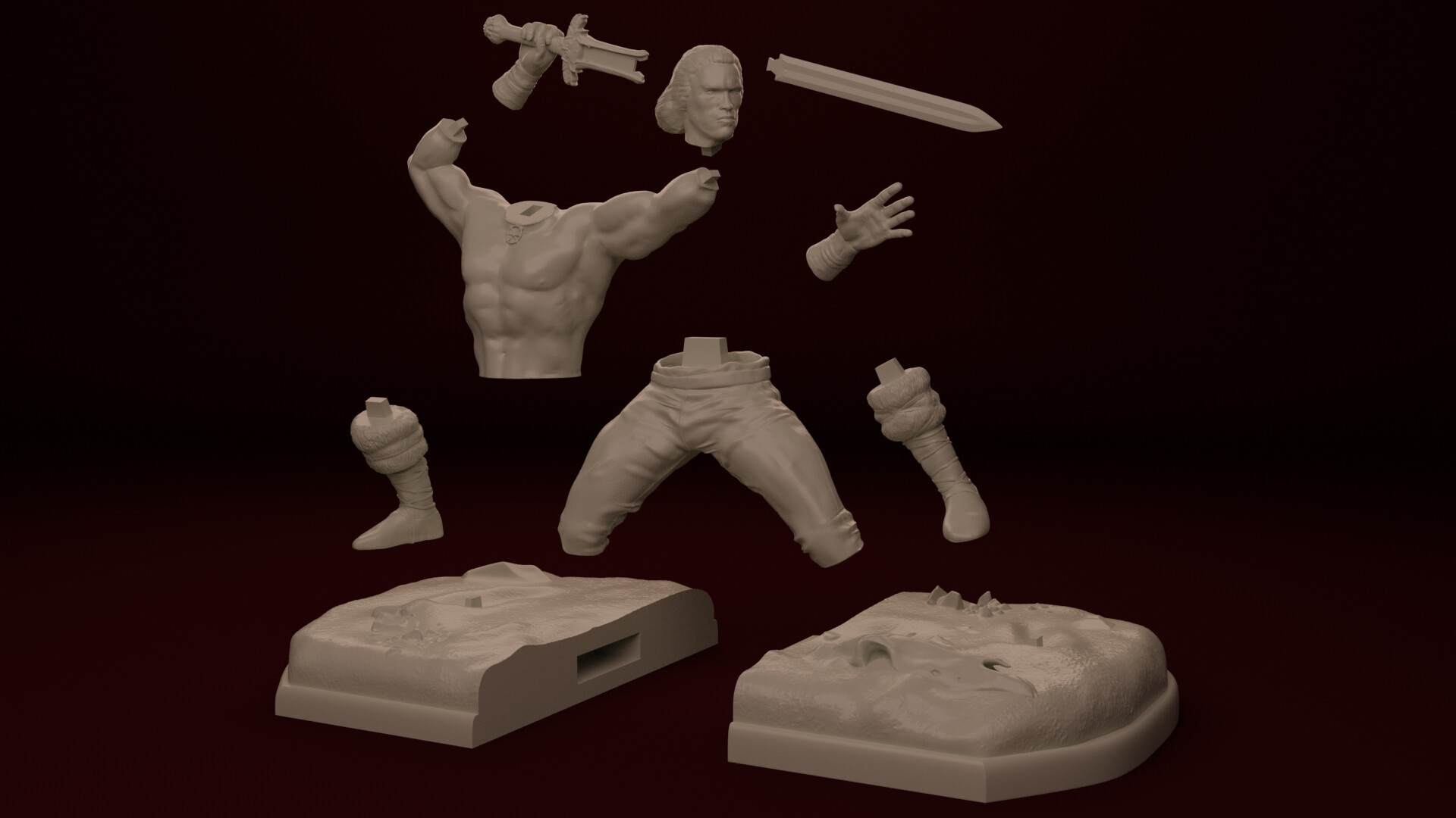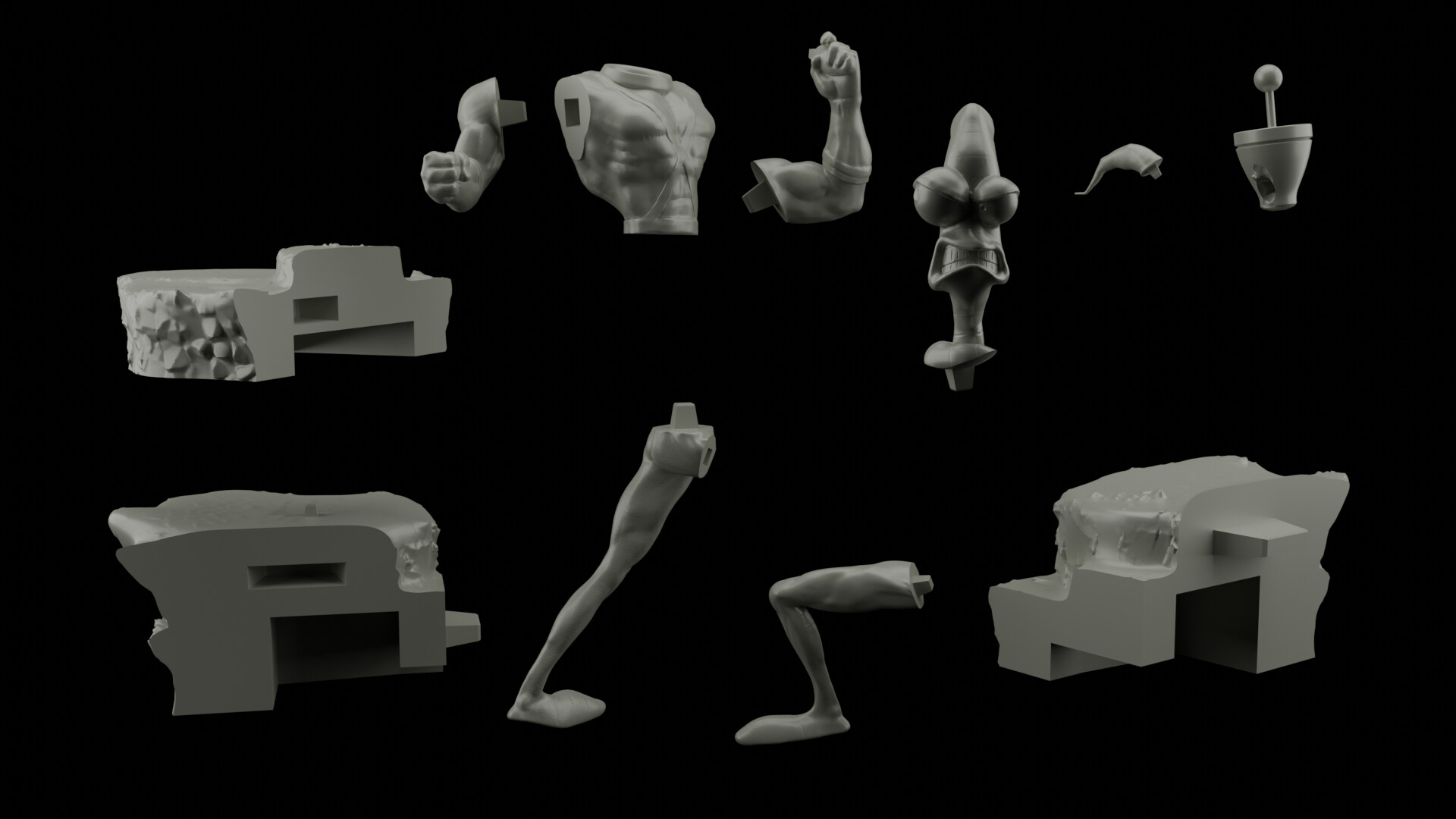 Некоторое время назад налепил несколько моделек для печати. Собственно говоря их на данный момент всего 5 штук: Конан Варвар, Микеланджело из Черепах ниндзя, Непобедимый из недавнего мультсериала, Терминатор и Червяк Джим.