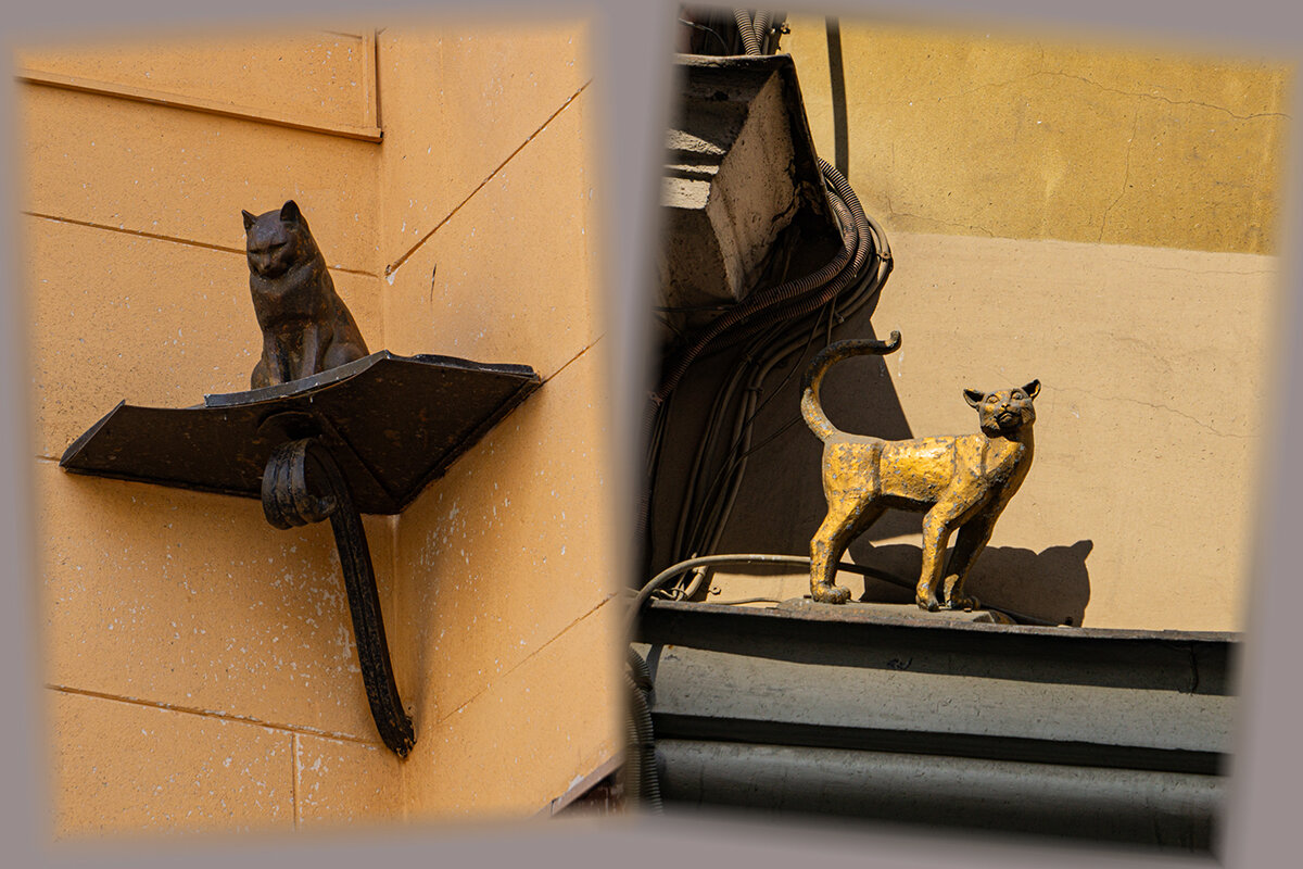 Фигурки Котов на фасадах домов в городах России