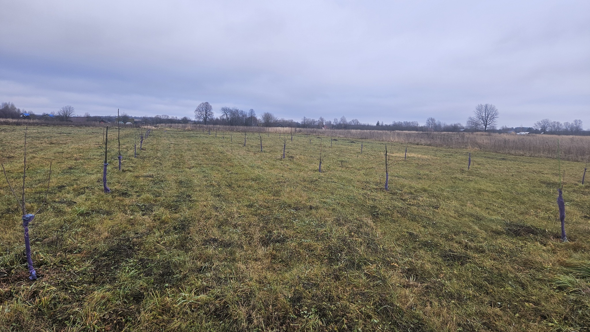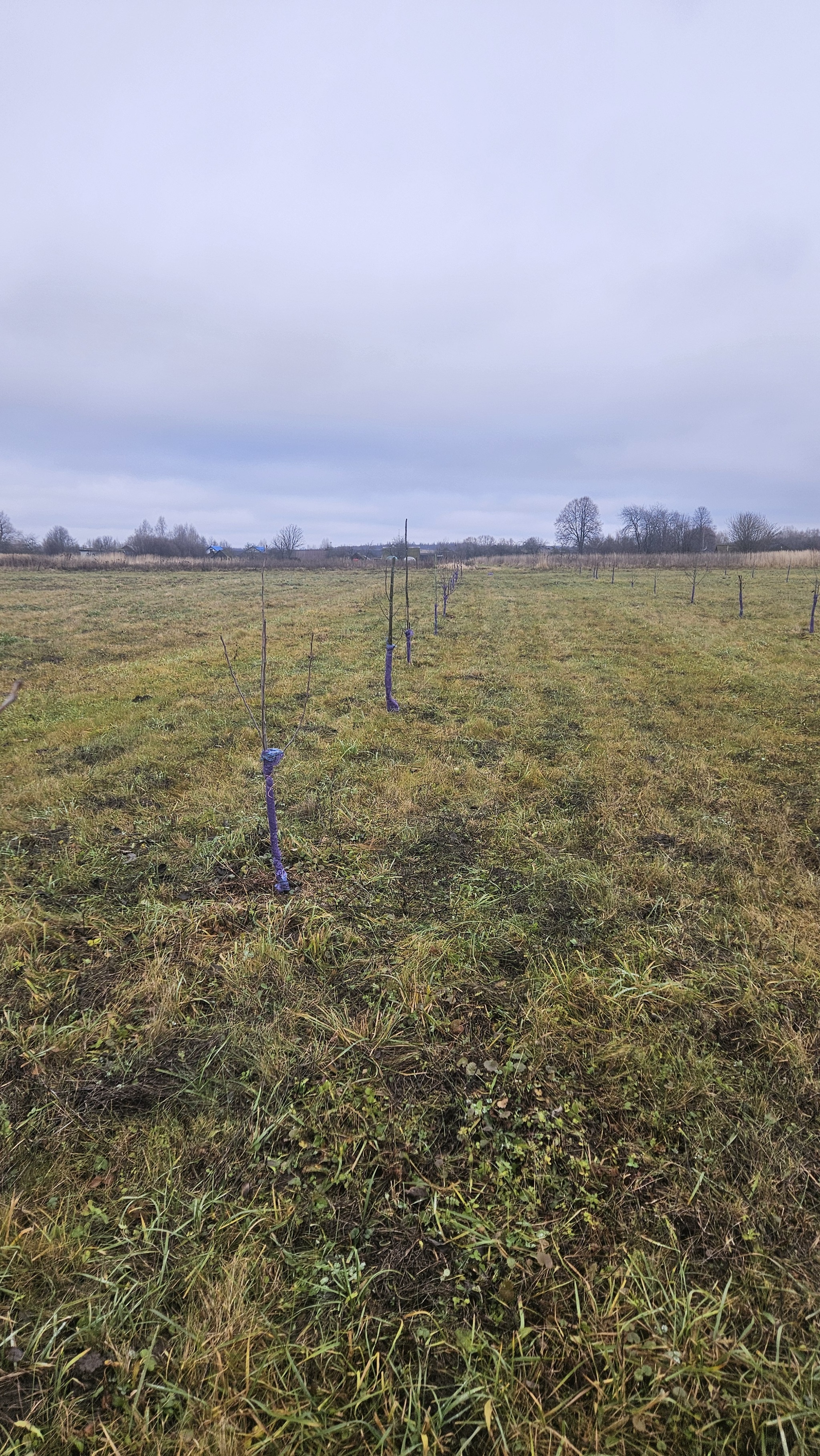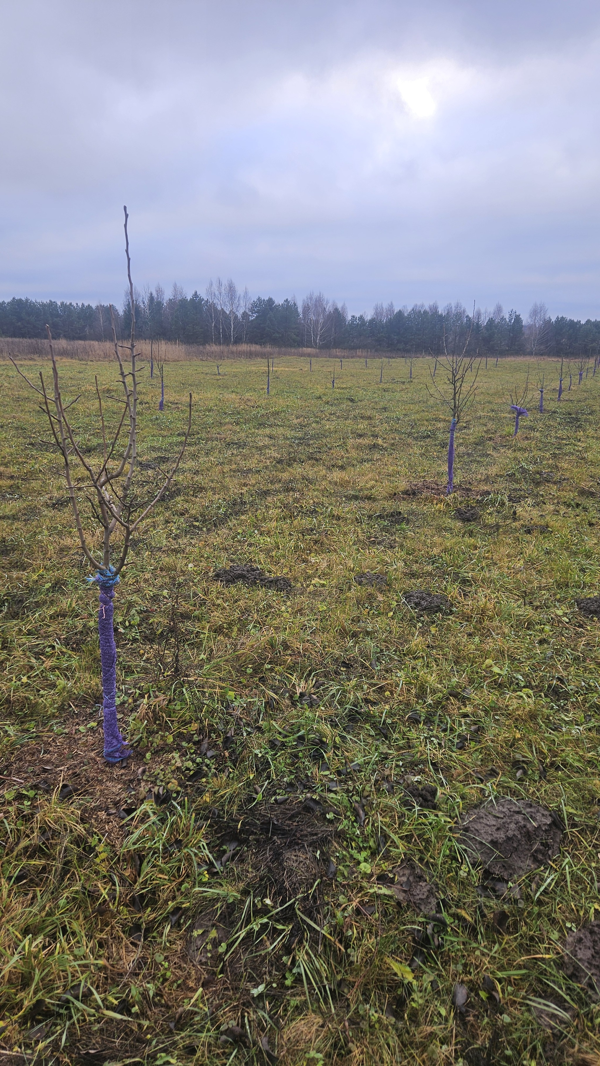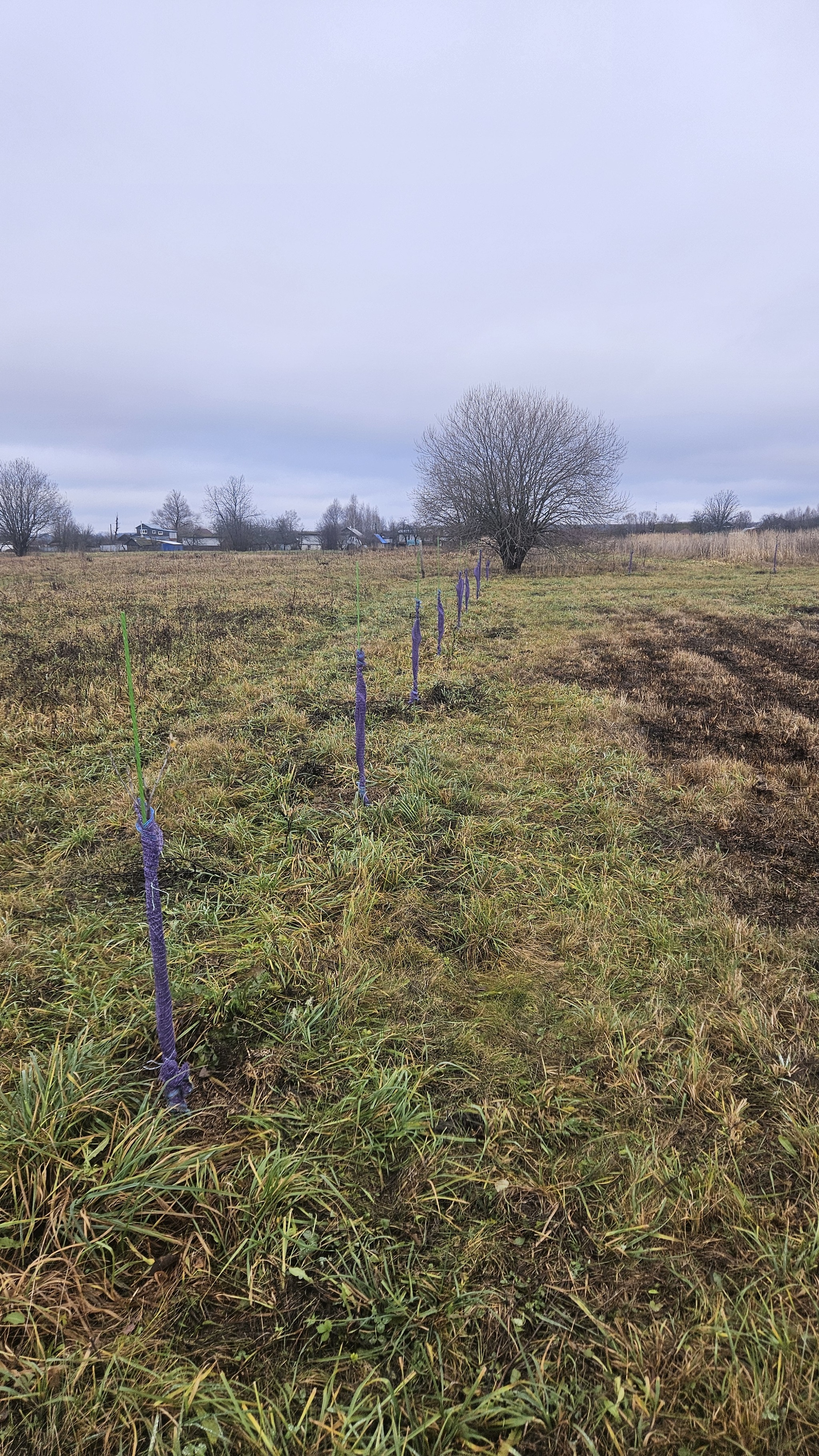 В эти выходные закрыл работы по саду. Уже несколько лет использую овощную сетку для защиты саженцев от наших ушастых друзей, пока полёт нормальный, две зимы пережил без потерь. До этого обвязывал еловым лапником, но это на порядок трудозатратнее.