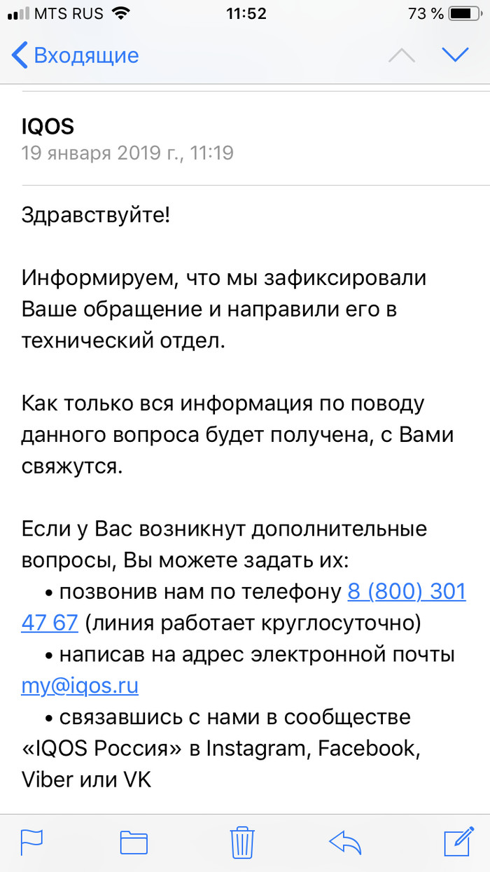 Звонил на прямую службу в Филип Морис они переадресовали на Службу поддержки АЙКОСа написал им письмо и звонил уже неделю разбираются и пока что толка нет.25 января звонил сказали что повторно сделали заппрос организатору.