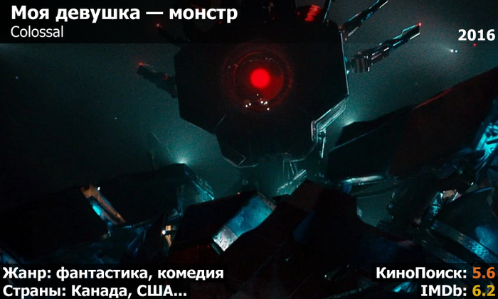 Конечно, главные персонажи этого фильма — это монстр и девушка, которая по сути им и является. Но также здесь есть и большой робот, играющий немаловажную роль. А еще здесь присутствуют актеры Энн Хэтэуэй и Джейсон Судейкис. Кинолента оказалась довольно странной, и многие посчитали ее бессмысленной и нелогичной. Но при этом разок ее вполне можно глянуть.