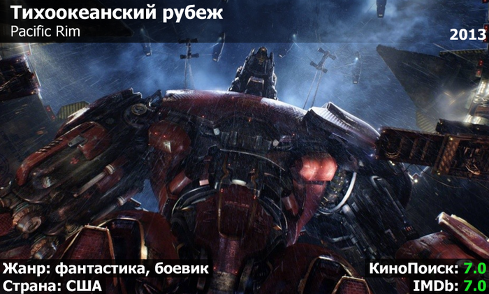 Что может быть круче, чем фильм про роботов от Гильермо дель Торо? На самом деле много чего: например, вкусная шаурма с гранатовым соусом или прогулка в резиновых сапогах по лужам. Да даже ветер в лицо в маршрутке во время сильной жары получше будет. Но речь не об этом. В 2013 году мексиканский мастер мистики, сказок и путаницы с Бенисио поставил эту необычную киноленту, которая стала продолжателем традиций, начатых Годзиллой, Кинг-Конгом и тонной аниме. В ней вы найдете огромных роботов, гигантских чудовищ, Чарли Ханнэма, Идриса Эльбу, Чарли Дэя и специфическое повествование, которое вряд ли понравится всем, но многим все же понравится. В любом случае фильм, определенно, любопытный. А о существовании второй части мы лучше не будем думать.
