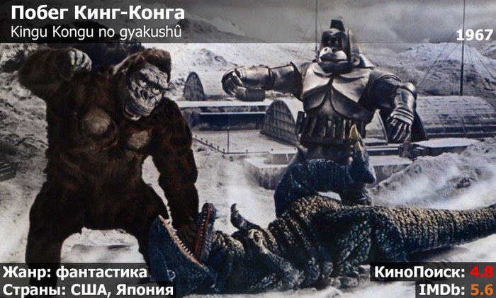 В далеком 1967 году, когда между Японией и США уже давно был закопан топор войны, две страны решили объединиться и подарить миру это замечательное (?) кинопроизведение, продолжившее приключения легендарного Кинг-Конга, начавшиеся за 34 года до этого в черно-белой ленте с названием «Кинг-Конг».