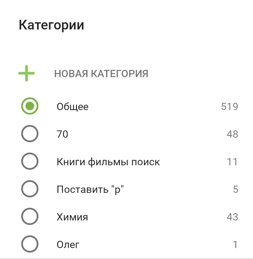 У меня как то так. И ещё несколько категорий не хватает, но мне лень, сохраняю в общее