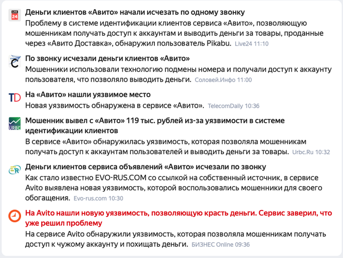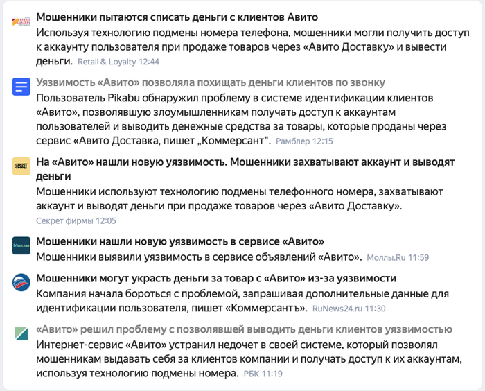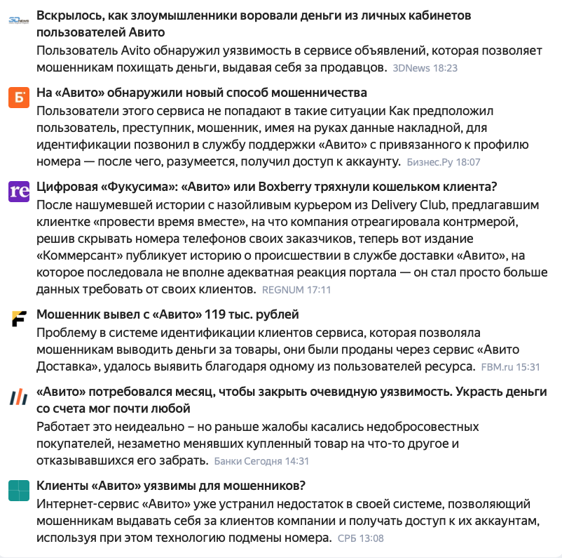 В течение нескольких часов со ссылкой на Коммерсант еще несколько крупнейших новостных порталов распространили информацию на своих ресурсах в числе них оказались РБК, Rambler finance, Бизнес Онлайн, 3dnews, 4Pda, Секрет фирмы и многие другие (их действительно было много). В свою очередь телеканал Россия показал сюжет посвященный моей истории и заявление пресс-секретаря Авито о том, что они устранили уязвимость и теперь для идентификации будут запрашивать дополнительную информацию (https://www.vesti.ru/article/2522266).