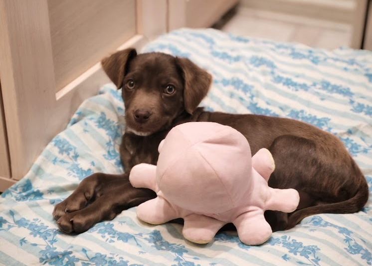 Месяц назад за ребенком увязался щенок, и вот такой он был