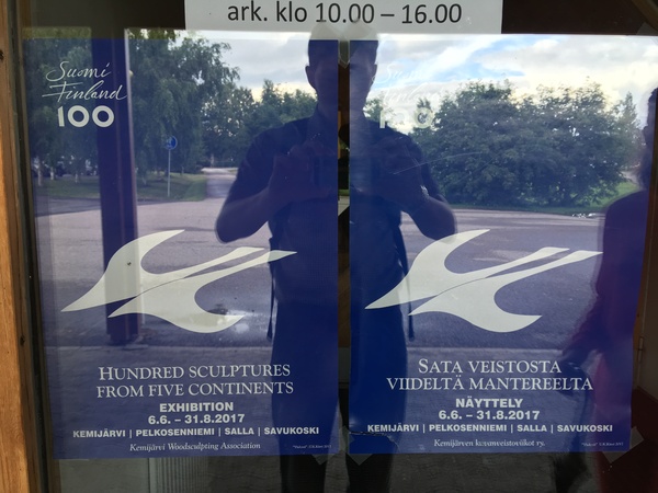 В частности, вот объявление об одной из таких выставок. В этом году столетие независимости Финляндии. И этому посвящённы различные мероприятия по всей стране. В Кемиярви проходит "Выставка сотни скульптур с пяти континентов". Правда, саму на выставку мы, к сожалению, не попали.