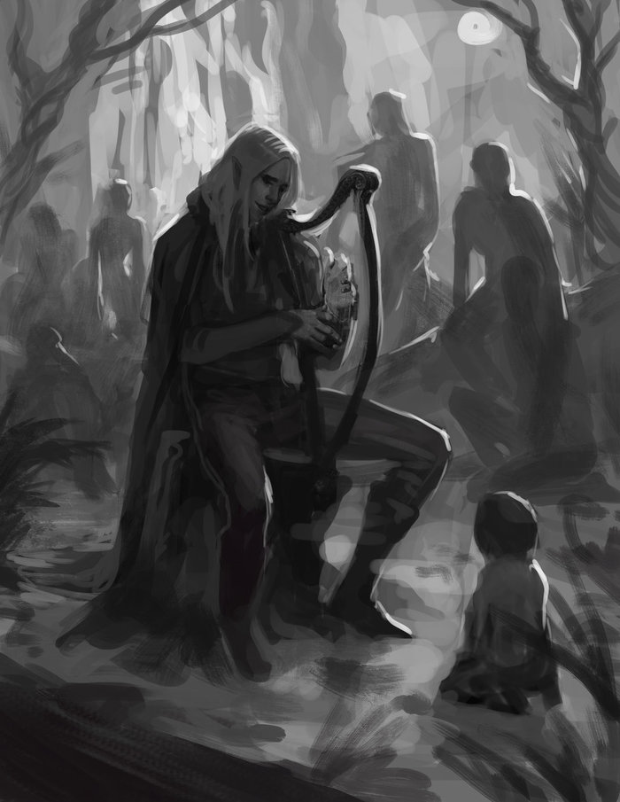 В 310 П. Э., Финрод отправился в очередное путешествие по востоку Белерианда, в Оссирианд, со своими друзьями, Маэдросом и Маглором, так как любил путешествовать и подружился с Зелёными Эльфами. Ночью он ушёл от своих спутников и у родников Талоса увидел свет и услышал пение, непохожее на пение эльфов. Подойдя поближе, Финрод увидел новый, неведомый народ - это были первые люди, пришедшие в Белерианд с востока – Племя Беора. Так Финрод, первым из нолдор, встретился с людьми, и в его сердце проснулась симпатия к пришельцам. Когда все люди уснули, Финрод сел у потухающего костра (люди не выставляли стражу) и взяв арфу Беора, запел о сотворении Арды и красе Амана. Люди проснулись и с изумлением и восторгом слушали прекрасную песню. Они не понимали слов, но Финрод использовал осанвэ (телепатию), так что песня вставала перед взорами людей, словно яркие видения; и ум каждого по-своему воспринимал эльфийскую речь.