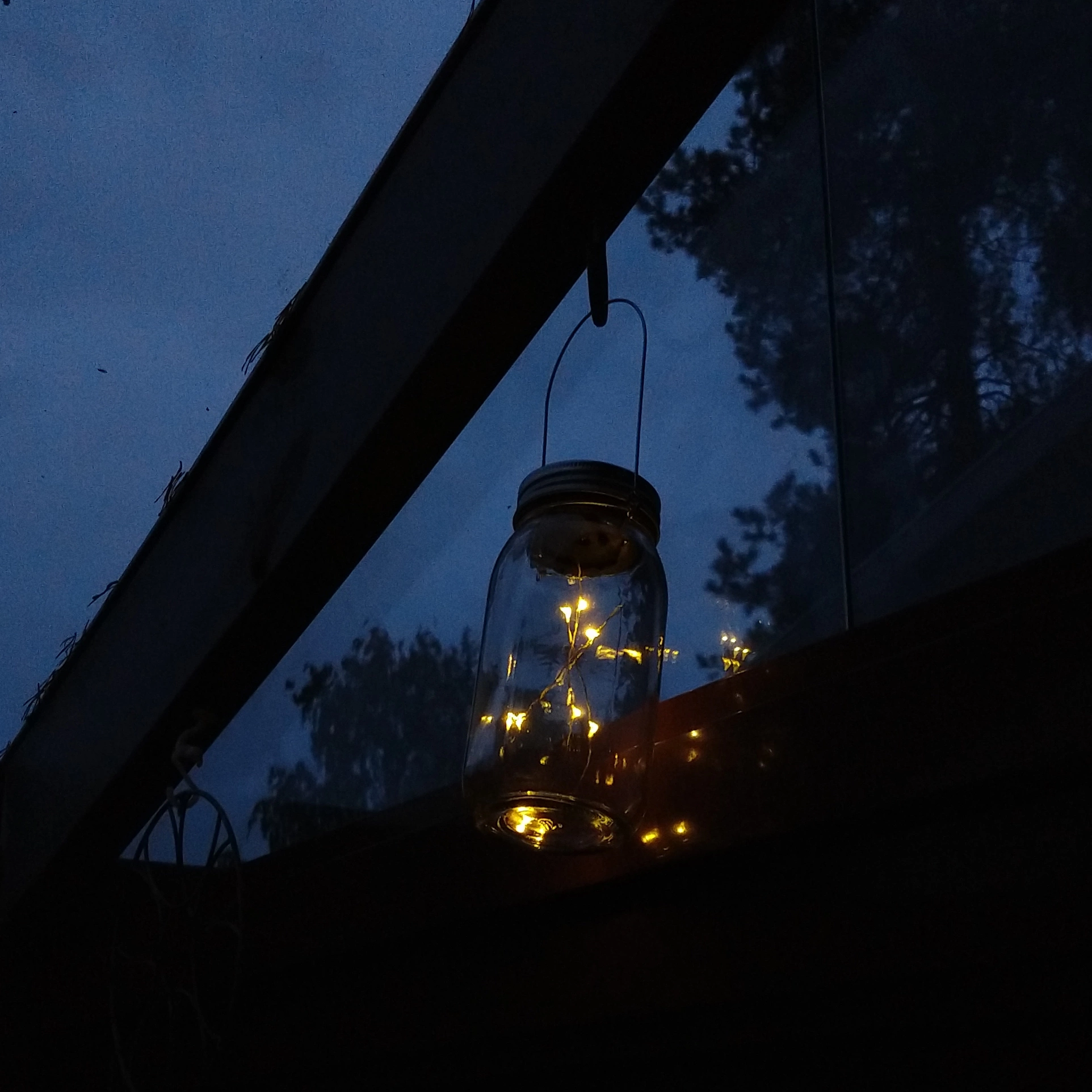 Фонарики в банке - очаровательная вещь на солнечных батареях, которую я случайно углядела в магазине и, естественно, притащила домой. :)
