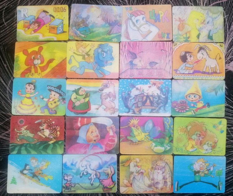 Они тут самые разные: и чистенькие-блестючие, будто только-только распакованные, и потрепанные и даже почти что стёршиеся. А сколько разных серий: покемоны, Mortal Kombat, Street Fighter, Power Rangers, Batman, Disney, даже Простоквашино есть.