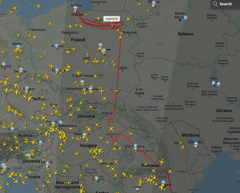 Беспилотники FORTE11, FORTE12 над Черным Морем пропали, но зато появился FORTE10, усиленно наблюдающий за границей Калининградской области
