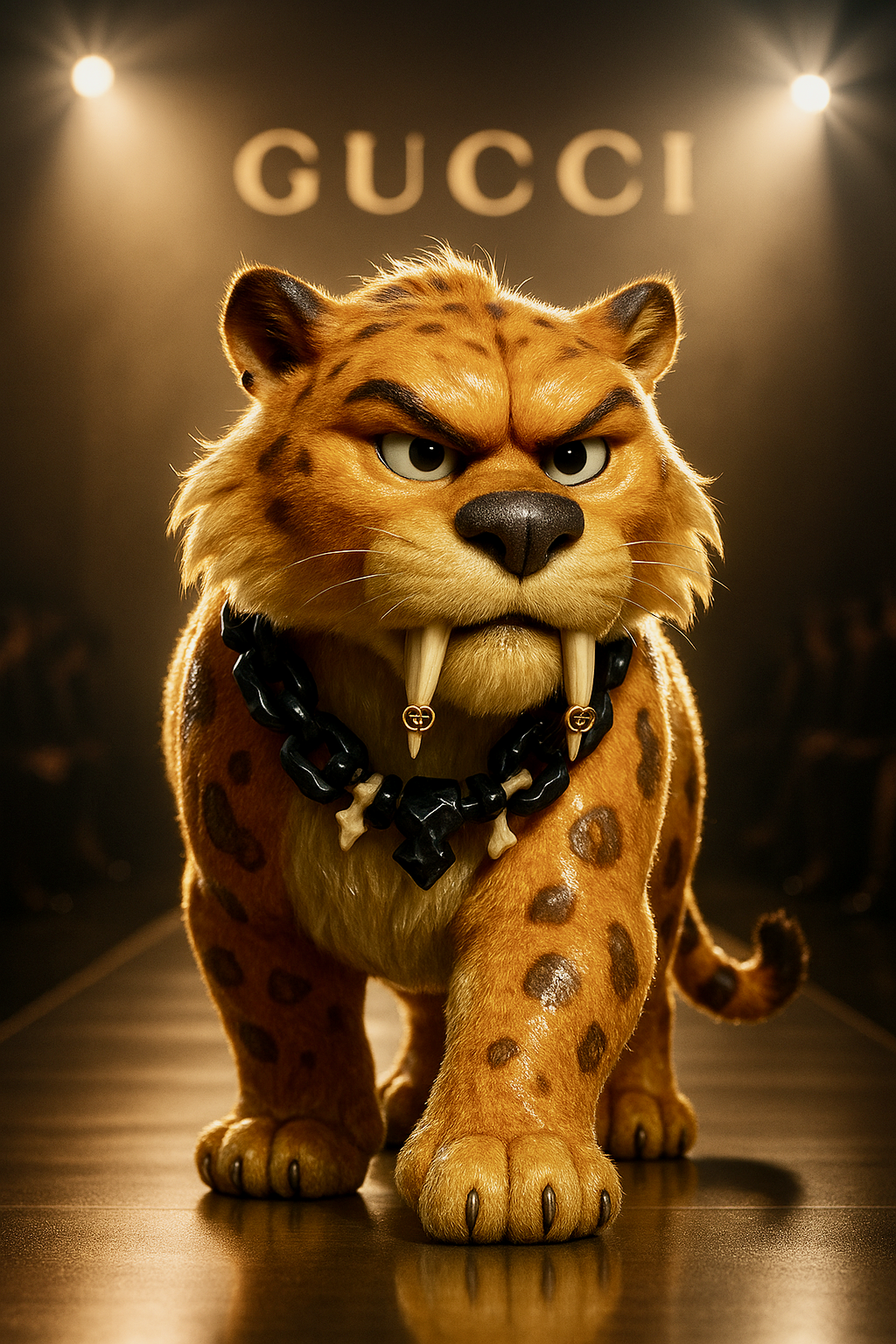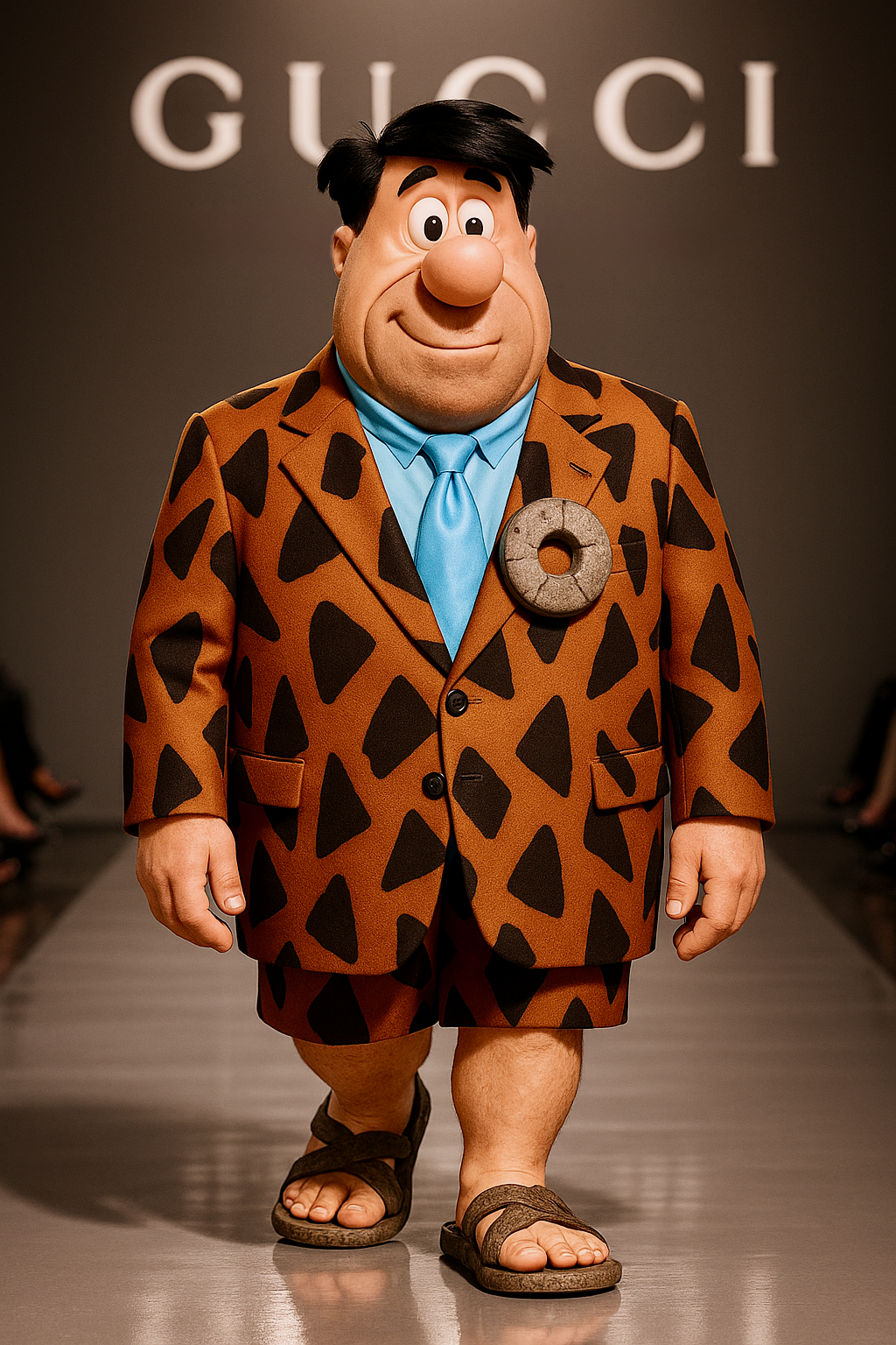 Если бы герои Флинстоунов пошли по подиуму, а не по каменным улицам, это выглядело бы именно так. Gucci в коллаборации с доисторической эстетикой вывели Бедрок на новый уровень.