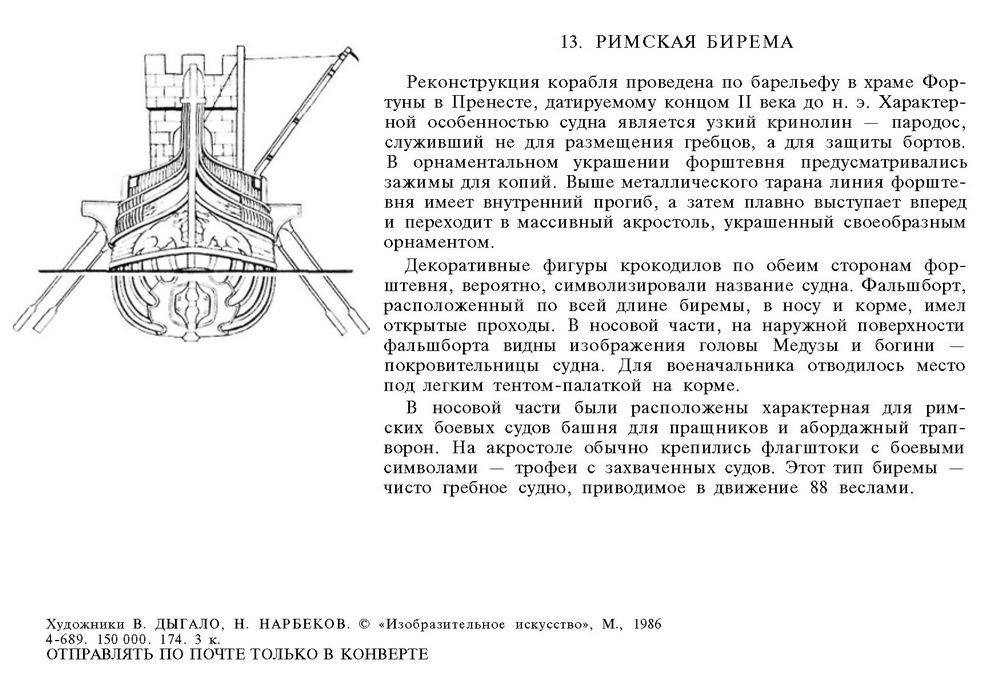 Тем не менее, модели фирмы "Звезда" разработаны не "из головы". Сами модели разработаны на основе изображений античных кораблей, изображенных в книге советского историка-мариниста контр-адмирала Виктора Ананьевича Дыгало "История корабля", вышедшей в 1981 году. Книгу проиллюстрировал художник Михаил Аверьянов. Также были выпущены несколько наборов открыток под этим же названием. Первый из наборов, о флоте античного мира иллюстрировал художник Николай Нарбеков.