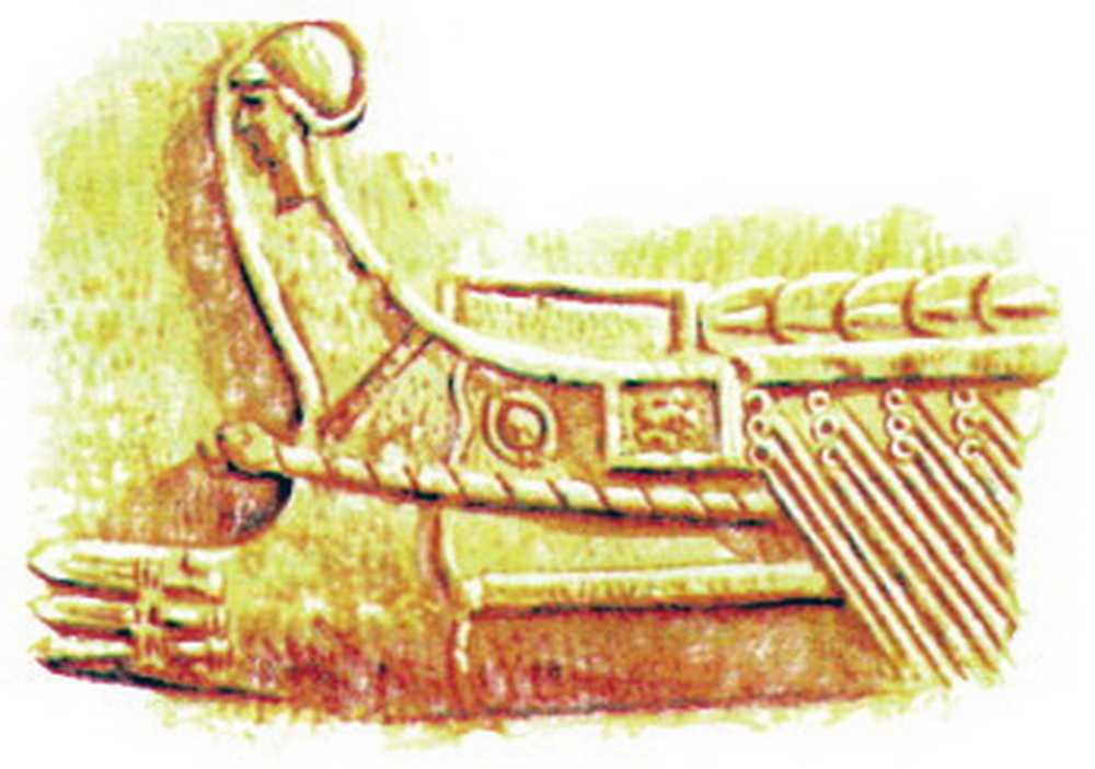 - Другая форма носа (с крокодильчиком) и хвостового украшения. Плюс дополнительные детали защитного барьера над гребцами.