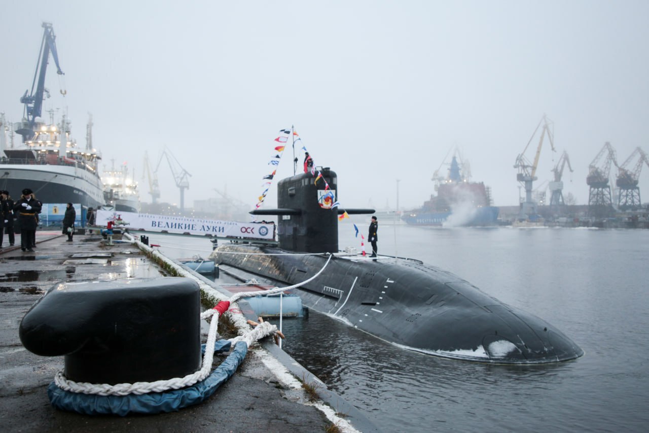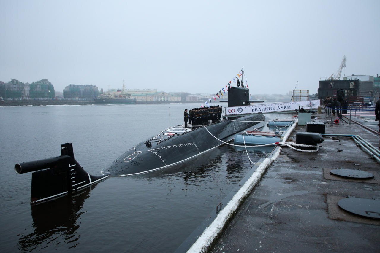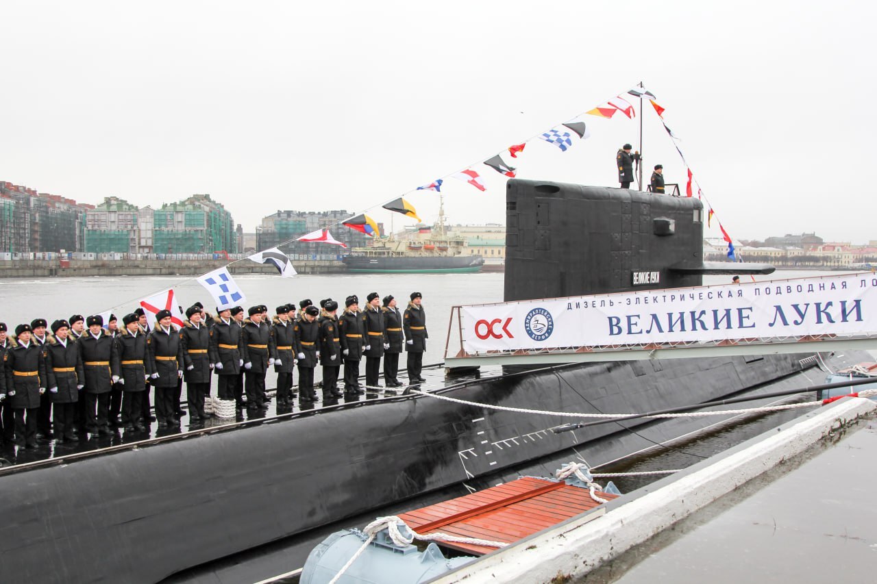 В состав Военно-Морского Флота России принята новая дизель-электрическая подводная лодка «Великие Луки». Торжественная церемония подъёма Андреевского флага состоялась на Адмиралтейских верфях в Санкт-Петербурге.