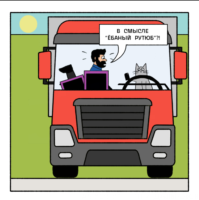 Кот Вулкан и дальнобой едут далеко-далеко. В дороге дальнобоя развлекает очень эрудированный и умный кот Вулкан.