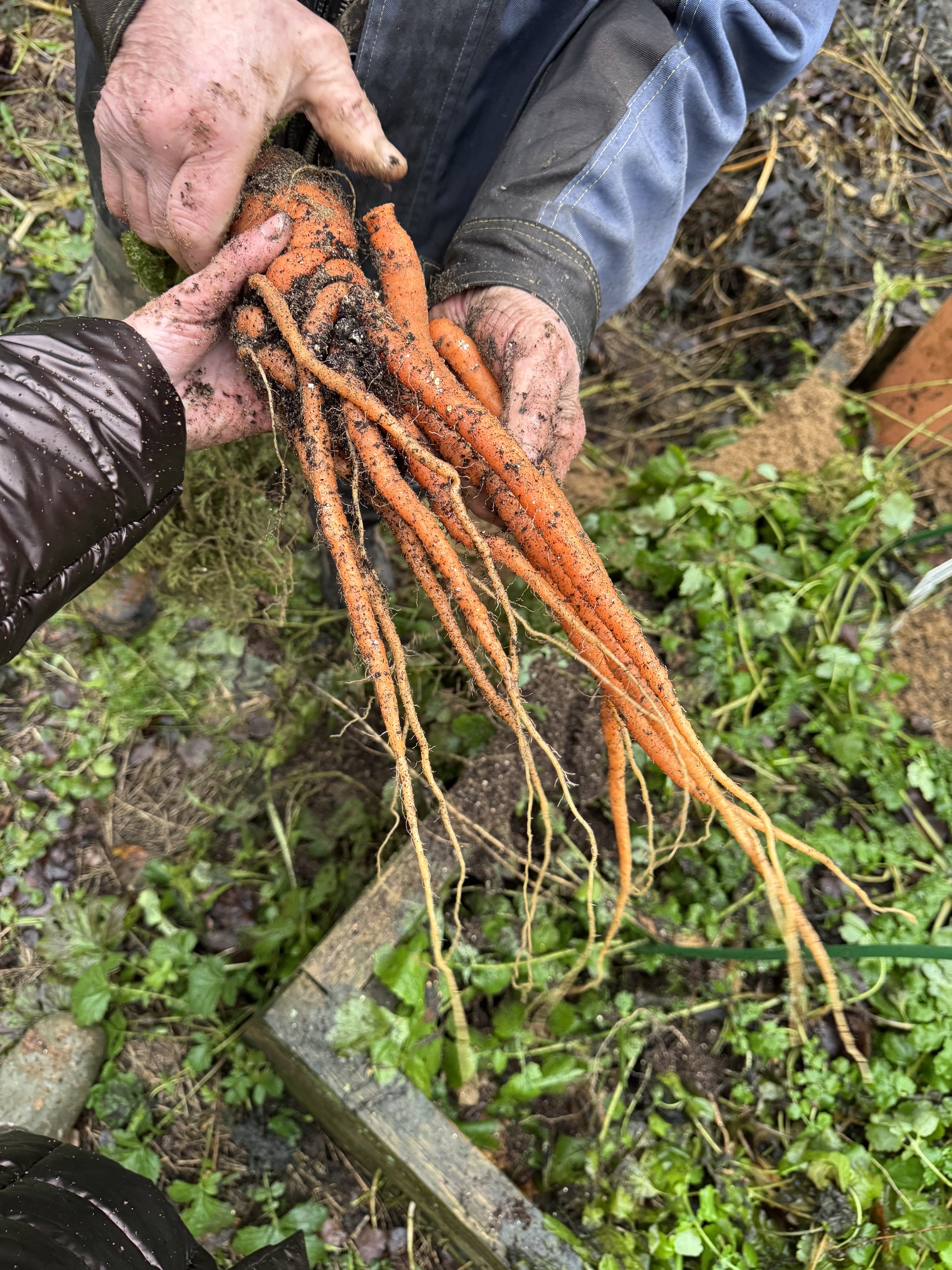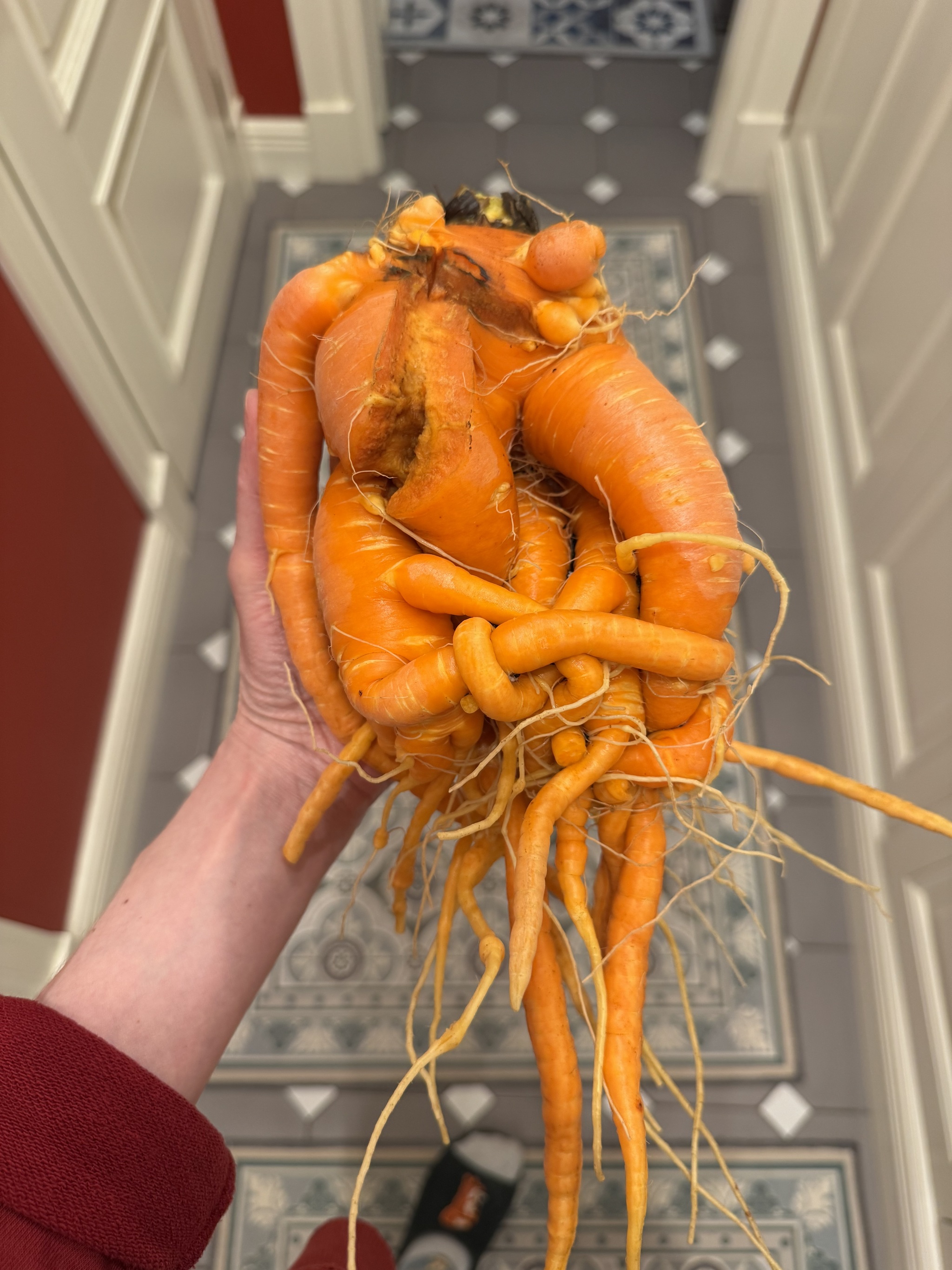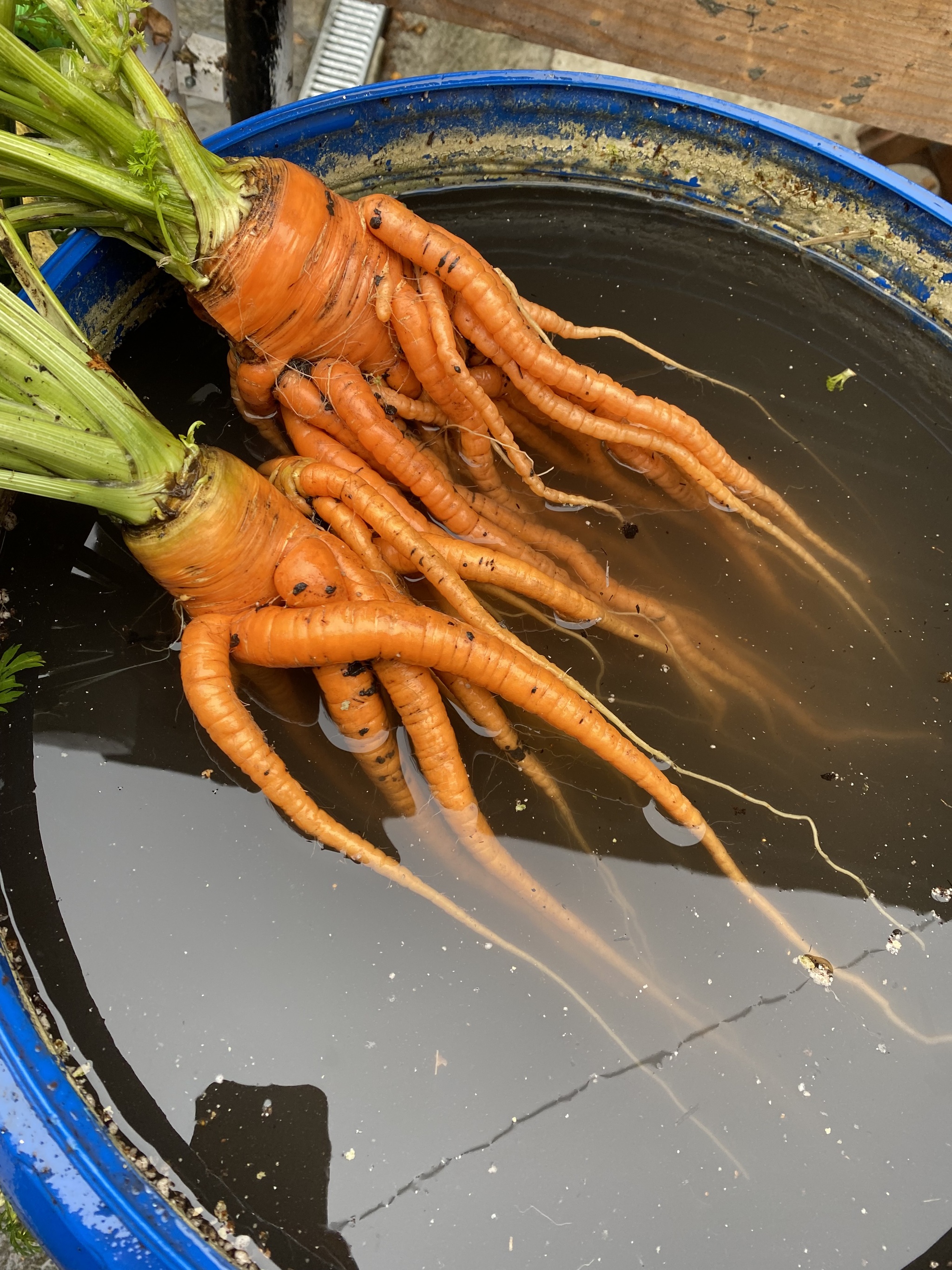 Почти кролик из шляпы😁 А вообще оказывается это очень не просто выращивать на длину морковь. Тем более удивляет как выращивают в таких узких трубах. Мы вот второй год растим и получаются многоножки-мандрагоры😅 При этом следуем вроде бы советам профи, наверное нужно не через рассаду растить, надо напрямую сеять. Будем вновь пробовать, потому что это азартно. И плюс бонусом что морковь растёт вполне до самых заморозков сильных. Мы свои снимали в этом году в начале декабря.