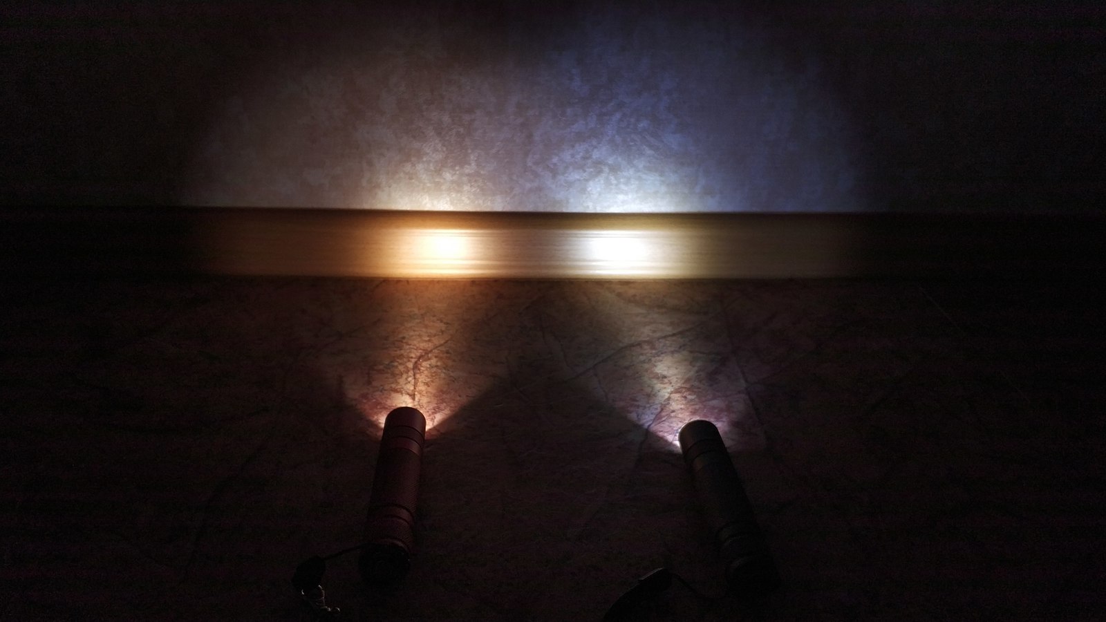 Установил аккумулятор 3S на 1000мач, тест на улице показал что у меня в руке полный эквивалент автомобильной фары. Даже используя колхозный отражатель из фольги свет был очень яркий. Светодиоды на лампе расположены по сторонам, а лампу установил "как в фаре" направив светодиоды вверх и вниз. В итоге на фото и видео видно что луч бьет вниз и вверх неестественно освещая дорогу. Качественный отражатель - это половина фонаря!