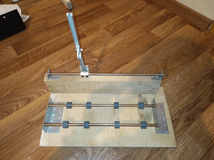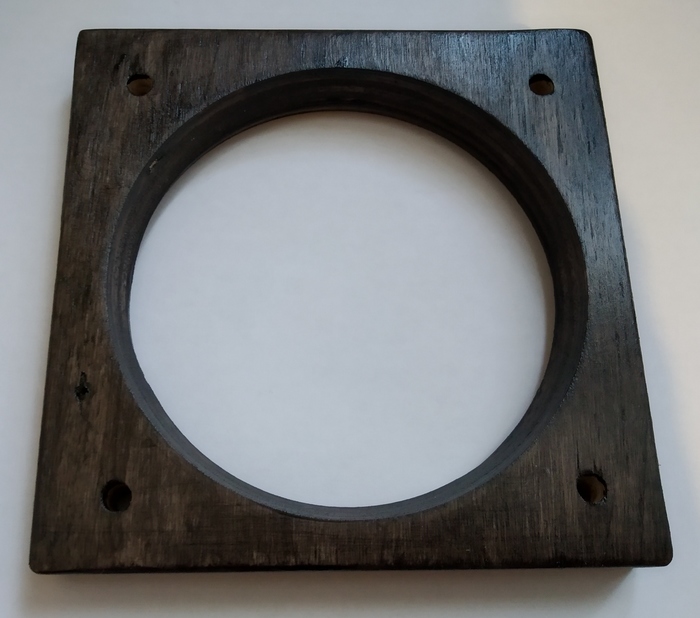 Это кусок фанеры 10мм, с отверстиями под стойки и центральной дырищей расточенной как раз под размер колбы. Она туда плотно садится и не выпадает. Верхняя заглушка сложнее: