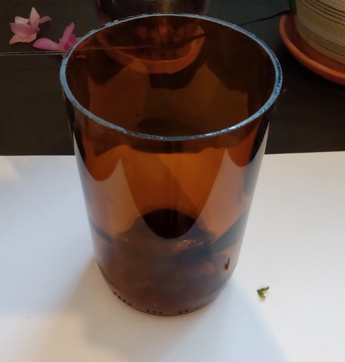 Теперь нужно подготовить сам сосуд. Подготовка состоит в банальном отрезании горлышка у бутыли. К сожалению сохранилась фотка только уже обезглавленной бутылки: