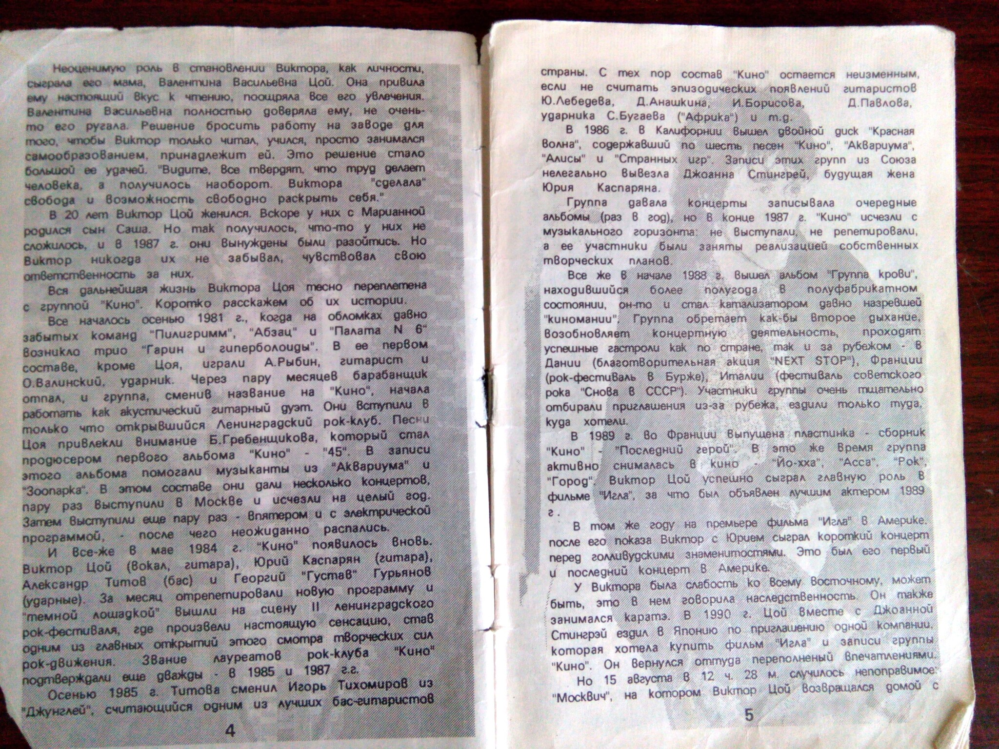 Краткая история группы Кино, из этой же книжки.