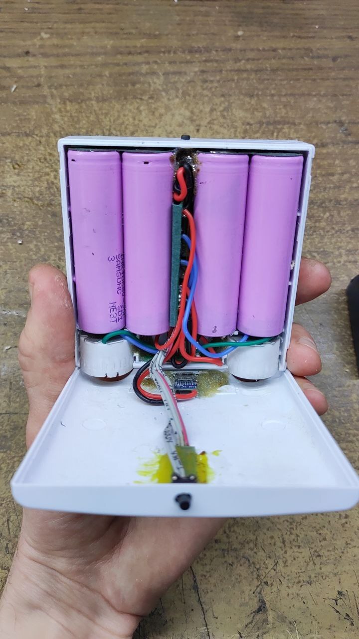 Всё это вклеено в корпус а сверху вклеенны соединённые аккумуляторы