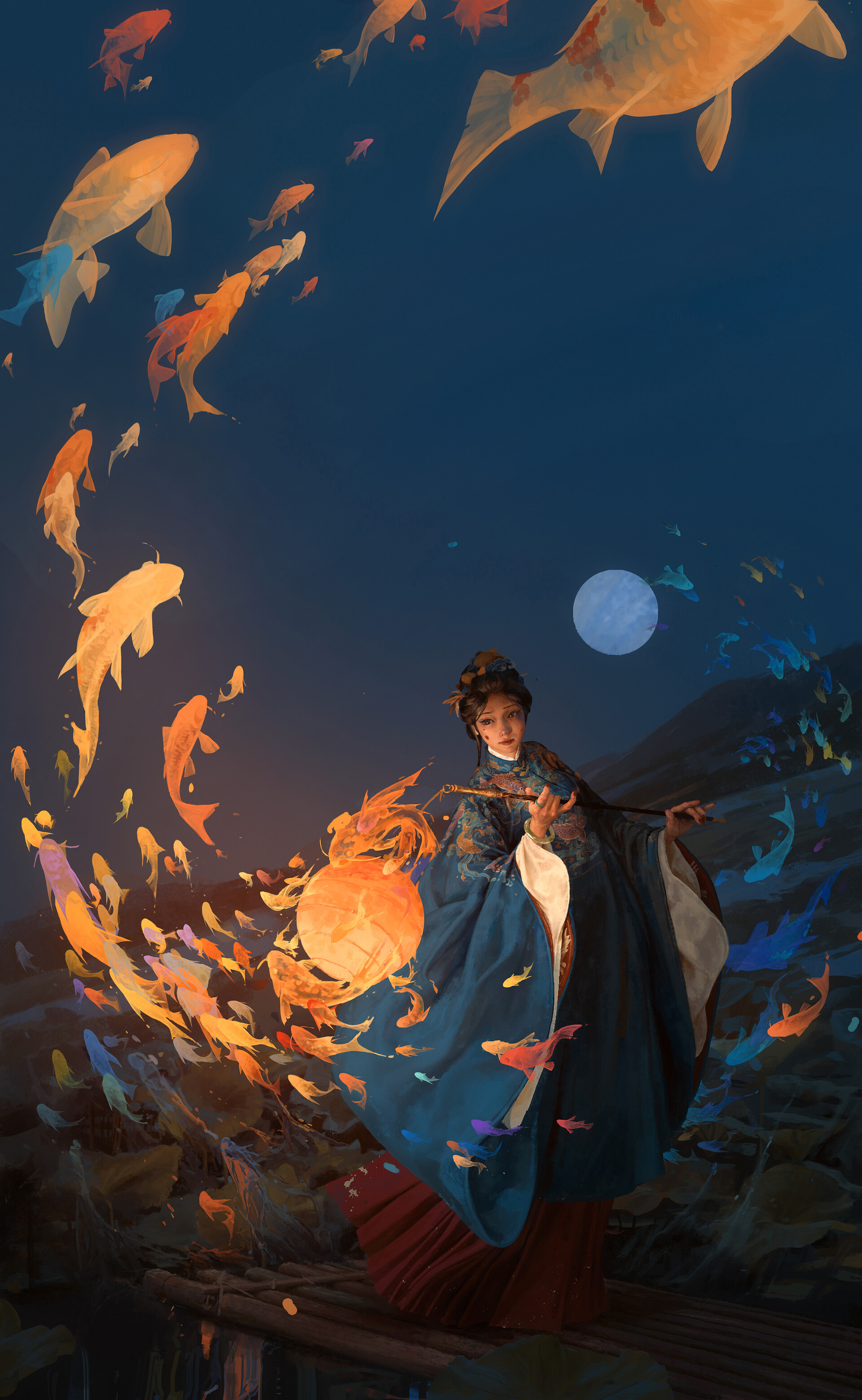 «Ночью роса прозрачна, и город наполнен лунным светом; огни зажигаются поздно ночью, чтобы поговорить о прошлом!».