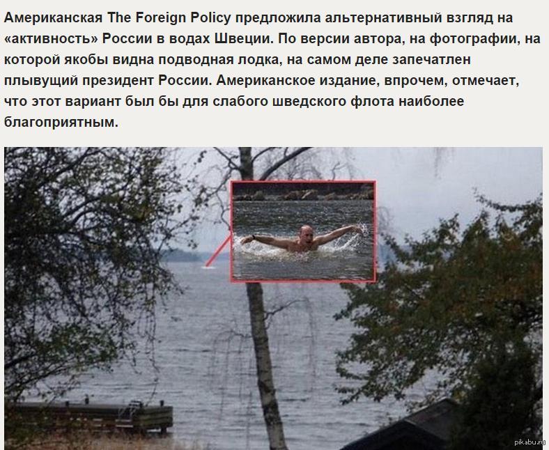12 Neurobioniqe 11 лет назад Foreign Policy разглядела в водах Швеции купающегося Путина Russia today Владимир Путин Швеция Полиция СМИ и пресса