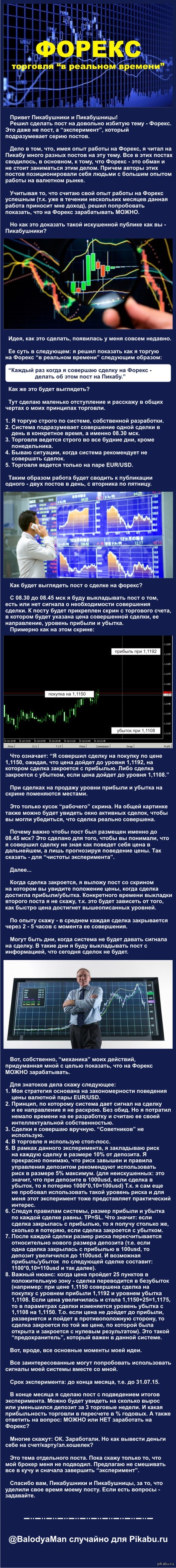 MachineElf Форекс. Торговля "в реальном" времени. Никакой "воды", только "мясо". 10 лет назад Решился на "эксперимент" с целью показать на своем примере, что на Форекс зарабатывать МОЖНО. Перед тем как минусовать, хотя бы прочтите начало :) [моё] Forex Финансы Стратегия Торговля Длиннопост Эксперимент