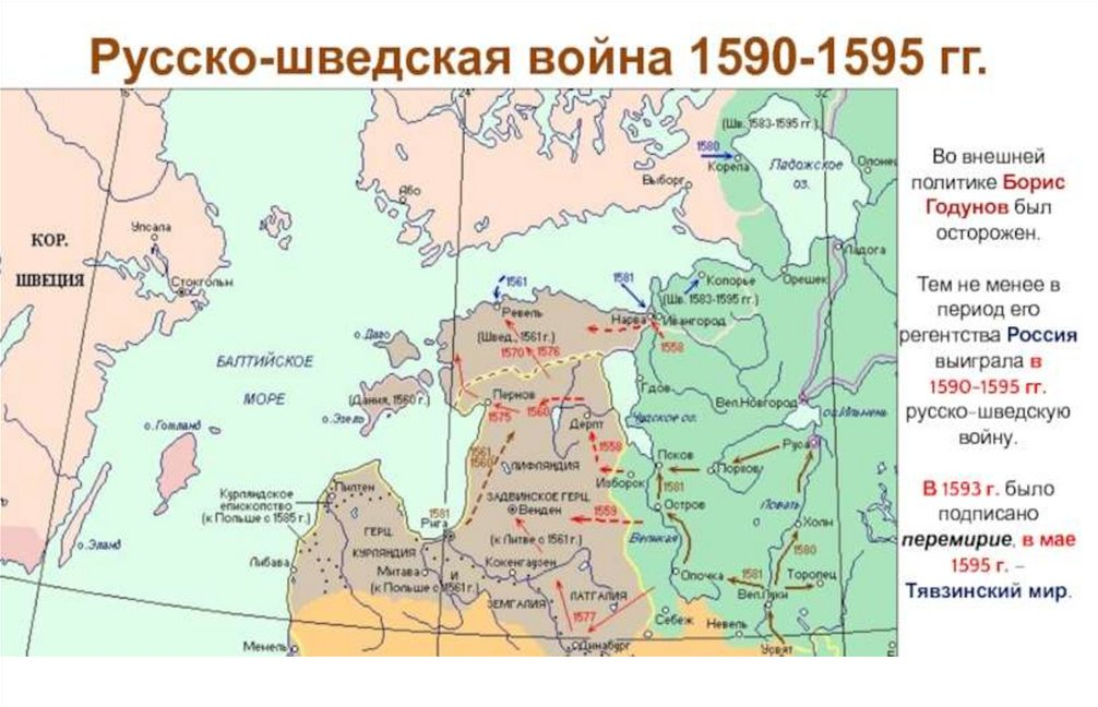 При Фёдоре случилась последняя крупная удача московской дипломатии того периода – война со Швецией (1590–1595). Годунов, понимая, что без выхода к морю Россия задыхается, решил быстренько вернуть то, что просрали в предыдущую кампанию («приключение на 20 минут, Морти»). В 1590 году русские войска осадили Нарву и Ивангород. Воевали с переменным успехом, но итогом стал Тявзинский мир 1595 года. Россия вернула себе Ивангород, Ям, Копорье и Корелу. Формально мы отыграли потерянное, но Нарва и Ревель (Таллин, ой, простите – Таллинннн) так и остались у шведов. Окно в Европу не открыли, но форточку приоткрыли. Но это была лебединая песня старой династии. Последний бой, бессмысленный и беспощадный (про это однажды уже писала).