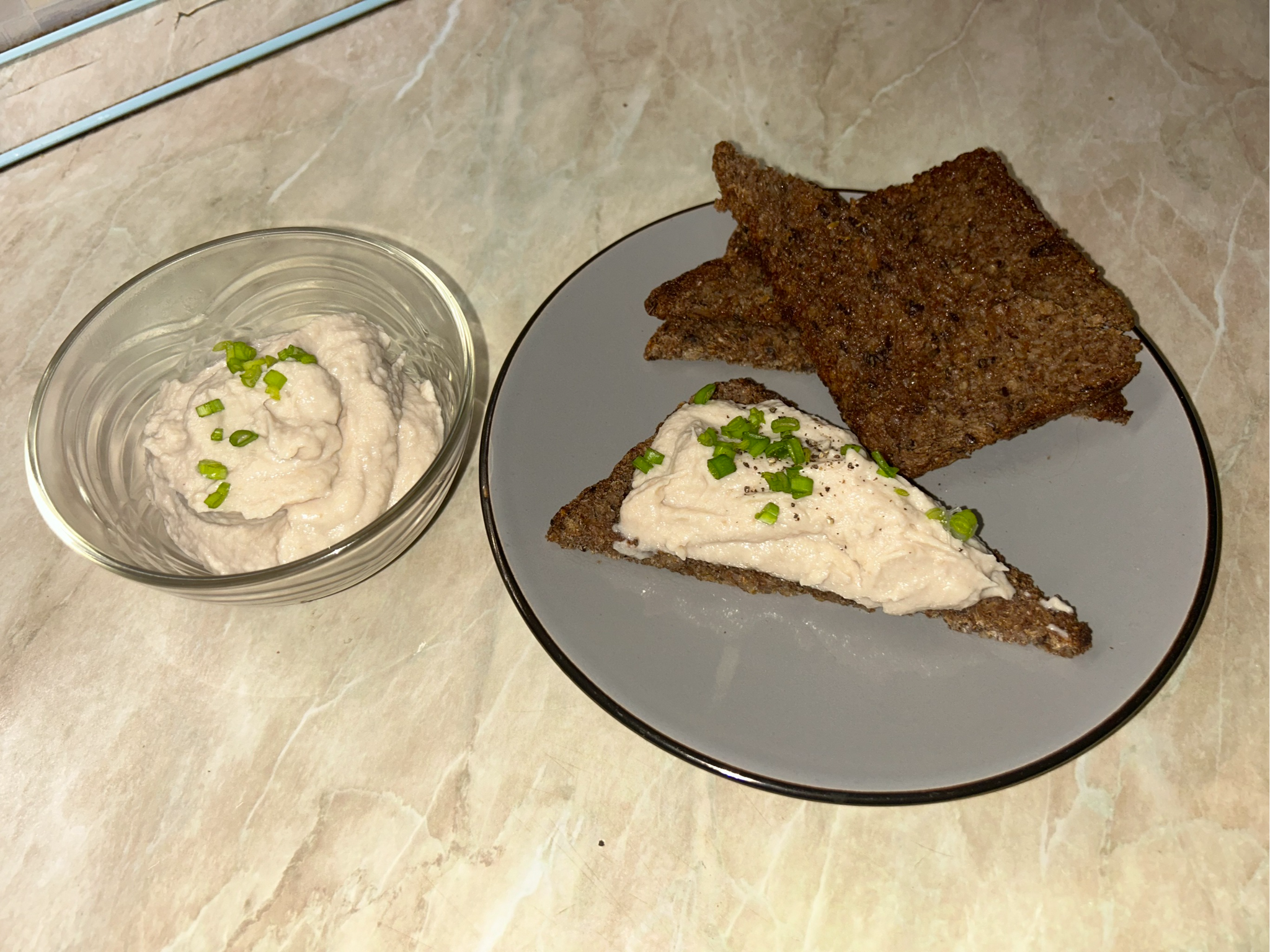 Вот вообщем и всё: достаем наш форшмак, накладываем на хлеб, посыпаем мелко резанным зеленным луком, можете как я посыпать ещё свежемолотым перцем, будет уместно.