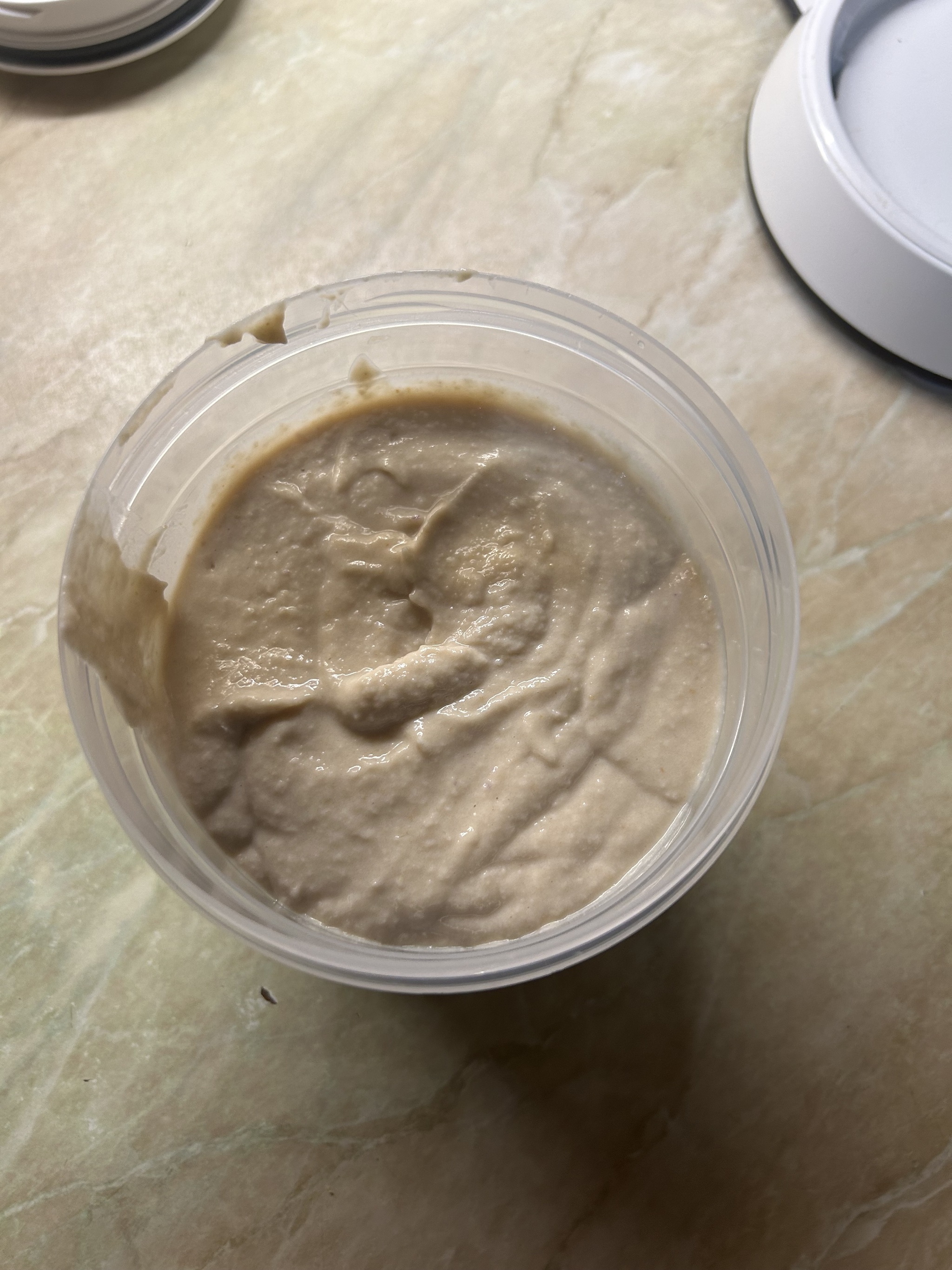 Готовую равномерную пасту, переливаем в подходящую емкость и отправляем в холодильник, хотя бы на часик.