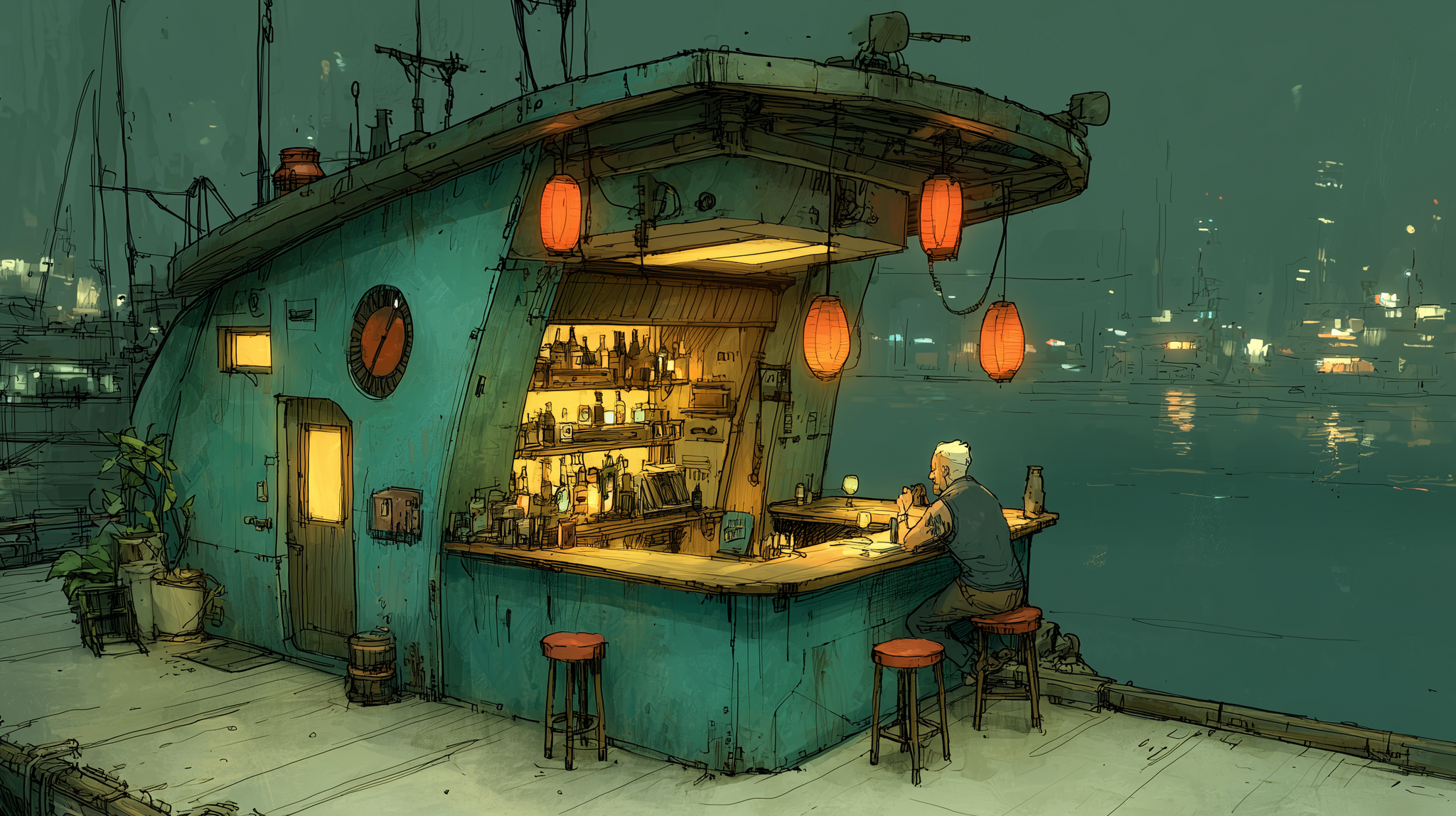 В баре переплетались запахи: кислый, резкий запах пива смешивался с терпкостью кофе и тяжёлыми, насыщенными волнами алкоголя.