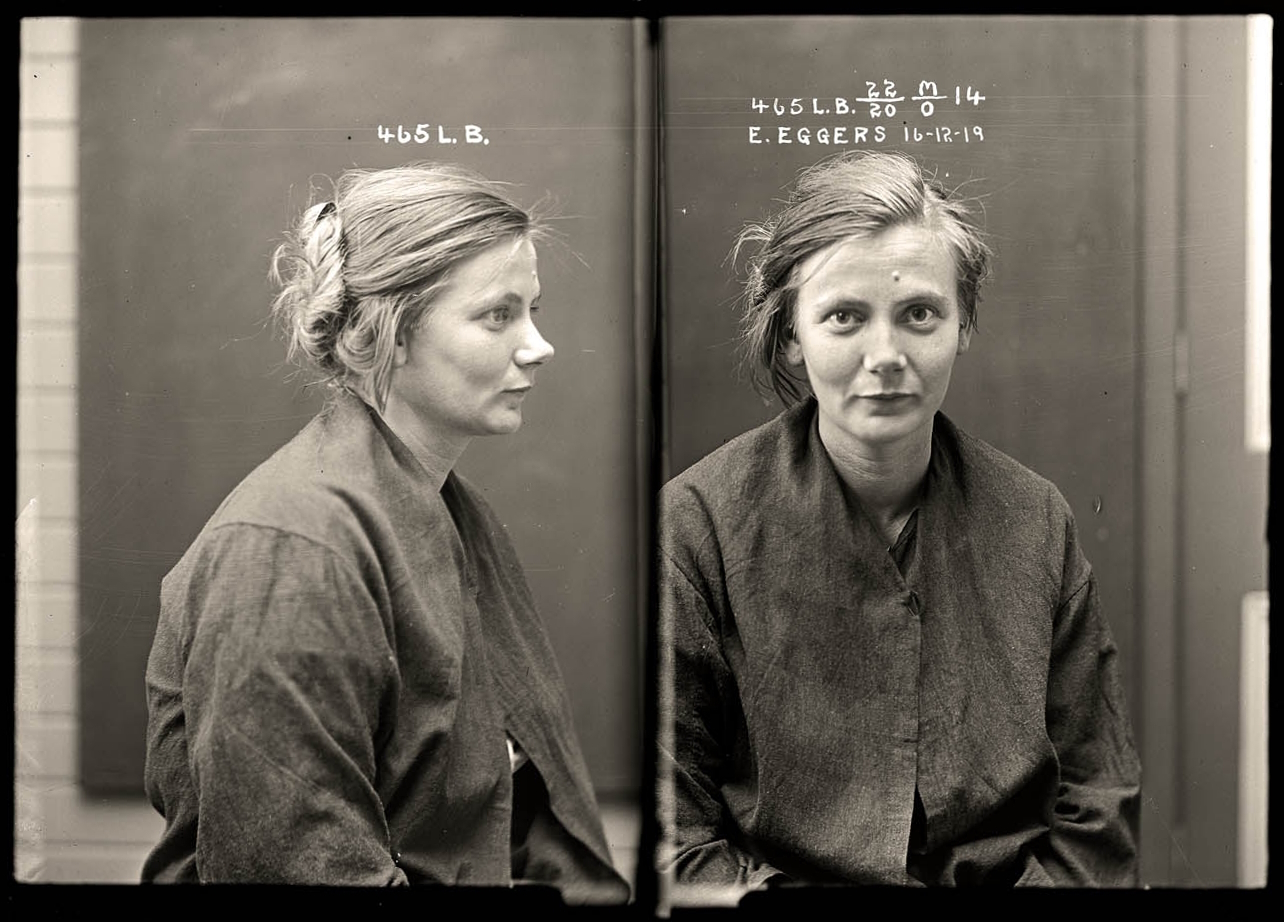 18) Эстер Эггерс, 22 года, фото от 16 декабря 1919. Напала на полицейского, попытавшегося задержать её за умышленную порчу чужого имущества, и серьёзно того ранила. За оба этих преступления была приговорена к 12 месяцам тюремного заключения.