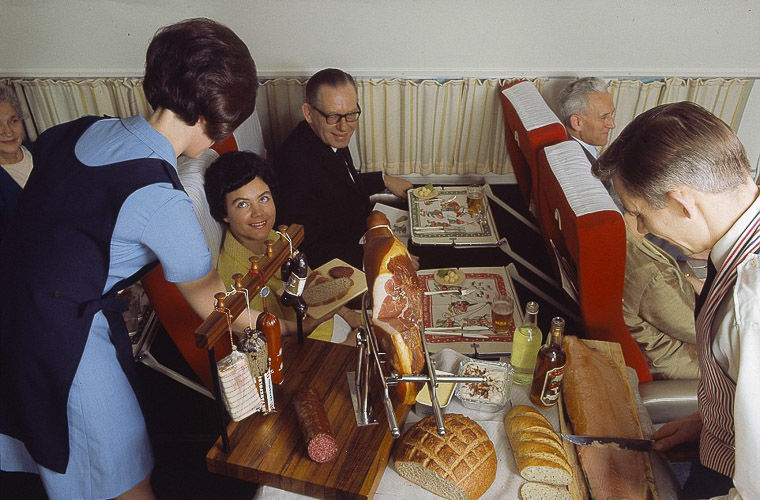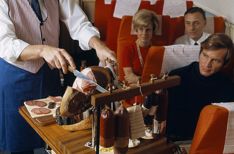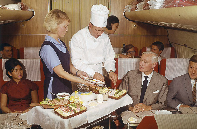 Подборка винтажных фотографий, обнародованных норвежской авиакомпанией SAS (Scandinavian Airlines) в честь 70-летия, открывает перед современным авиапассажиром «золотой век высокой кухни в самолетах».