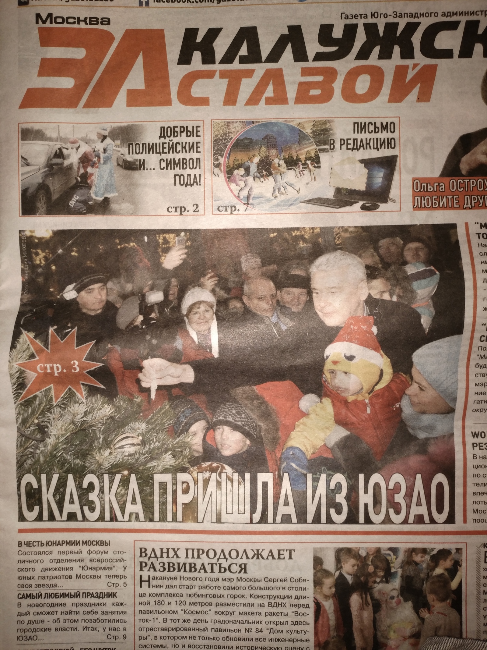 Dark2do Фото для главной страницы 8 лет назад В почтовый ящик обычно еженедельно кладут местный журнал: "за калужской заставой". Обычно я его сразу выбрасываю в ведро для мукулатуры, но на этом выпуске очень забавная вышла фотография на главной странице [моё] Сказка пришла из юза За калужской заставой Газеты Лицо Надеюсь в этот раз пост плюс