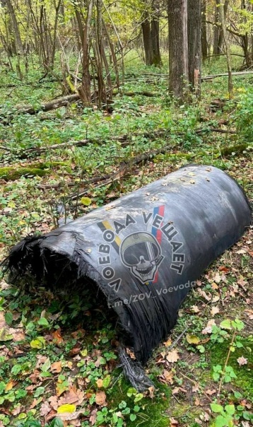 Военный блогер Алексей Воевода опубликовал фотографию фрагмента обшивки украинской крылатой ракеты "Фламинго", сбитой российским зенитным комплексом "Бук".