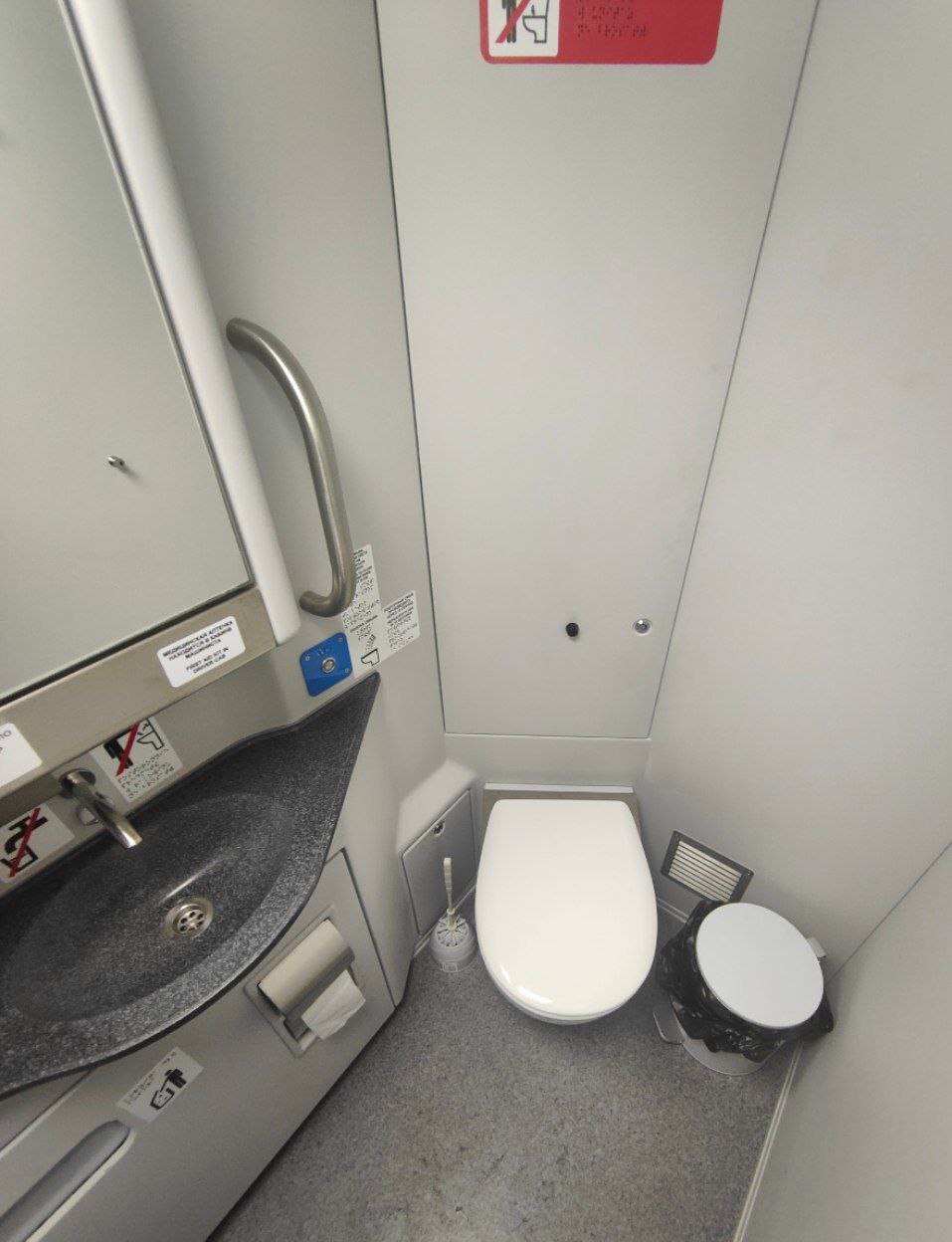 Николай прислал фотографии салона еще одного "Финиста", который сегодня курсировал на маршруте от вокзала Екатеринбурга до аэропорта. Также он рассказал, что в головных вагонах теперь 2 туалетных комнаты (небольшие по размеру), а еще то, что в поезде больше нет накопительной площадки с откидными сидениями.