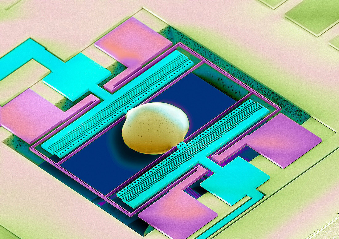 7. Микрофотография микро-CIA (микромасштабной конфокальной матрицы изображений), крошечного микроскопа. Это тип конфокального светового микроскопа. Он работает, помечая определенные молекулы красителями и освещая образец лазером. Лазер заставляет красители флуоресцировать, позволяя обнаруживать окрашенные молекулы. Это устройство можно использовать для обнаружения конкретных клеток или молекул в окружающей среде (например, боевых биологических агентов) или для диагностики заболеваний внутри организма. Он был разработан Люком П. Ли из Калифорнийского университета в Беркли, США. Увеличение: нет данных.