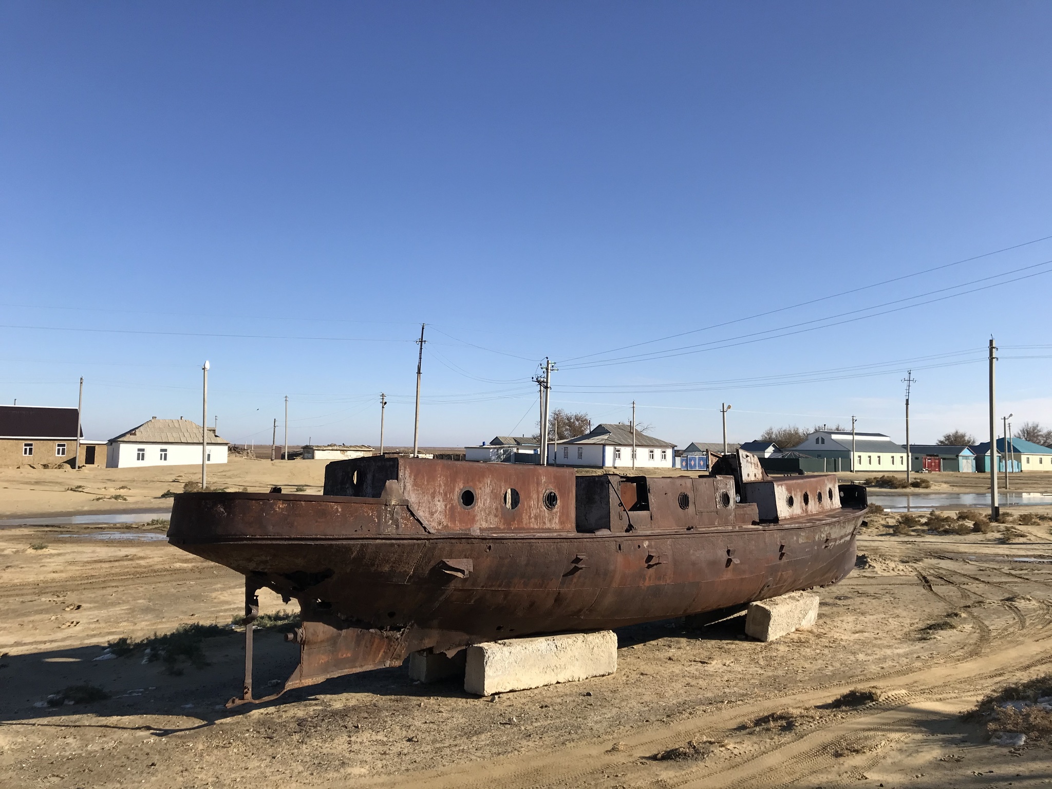 Затея была такая: проехать по дну моря и посмотреть на корабли в песках. В целом, все получилось, но планируя такую поездку, учитывайте, что много кораблей осталось только на узбекском берегу, а на казахском в 90-е большинство кораблей попили на металлолом.