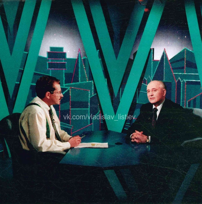 Владислав Листьев и Михаил Горбачев на съёмках передачи «Час Пик». Останкино, 1994 год.