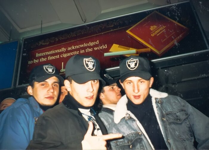 Актёры программы «Городок» Юрий Стоянов, Илья Олейников и певец Михаил Круг в одной компании, 1990-е годы.