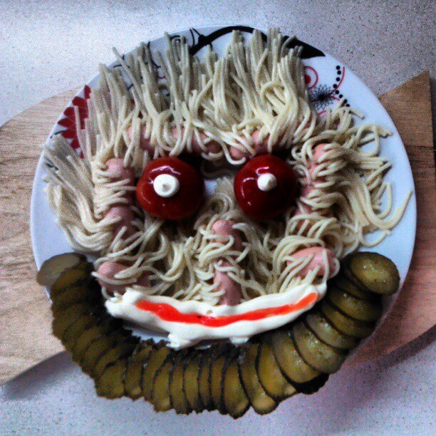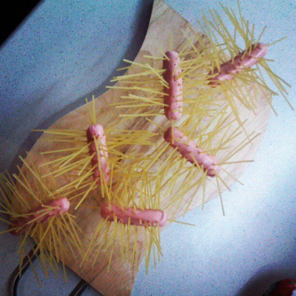 такое вкуснее, когда втыкаешь их в сардельку, а потом отвариваешь)) страшные вкусные монстры))