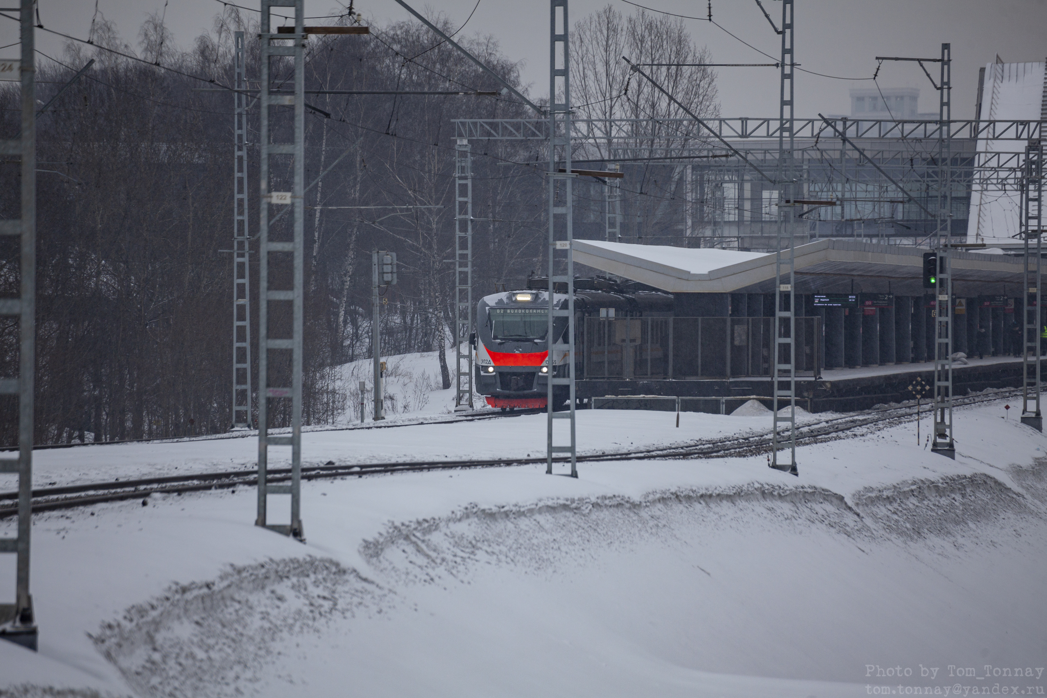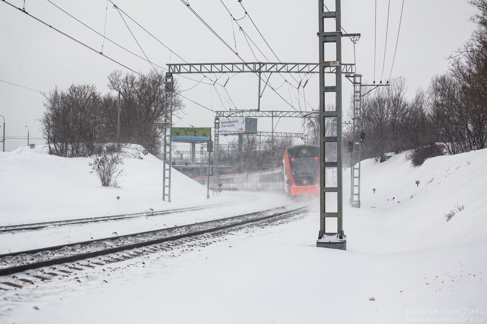 Так как подходы к точке были не особо разведаны, да и мы откровенные новички в этом деле, то пришли мы слишком уж сильно заранее, от того в кадре засветилось много электричек МЦД, а вот сам виновник торжества чуть вообще не пролетел мимо объектива из-за вконец замёрзшей техники. Но на несколько снимков, разогретого в перчатке аккумулятора, всё же хватило.