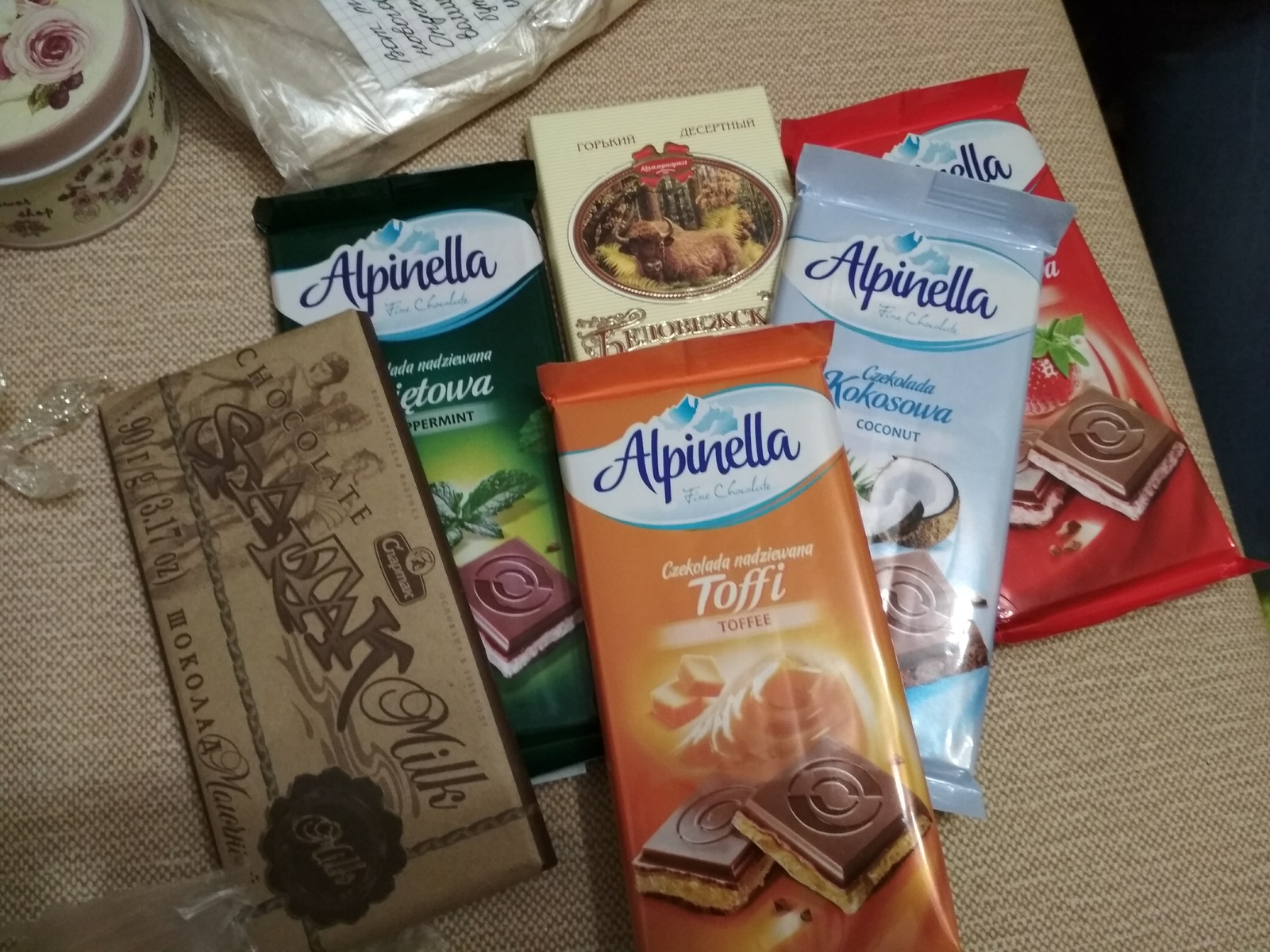 Так, смотрим. Очень хотела получить такие сладости, каких у нас нет. И вот они, целых шесть шоколадок! Мне на недельку хватит 😊