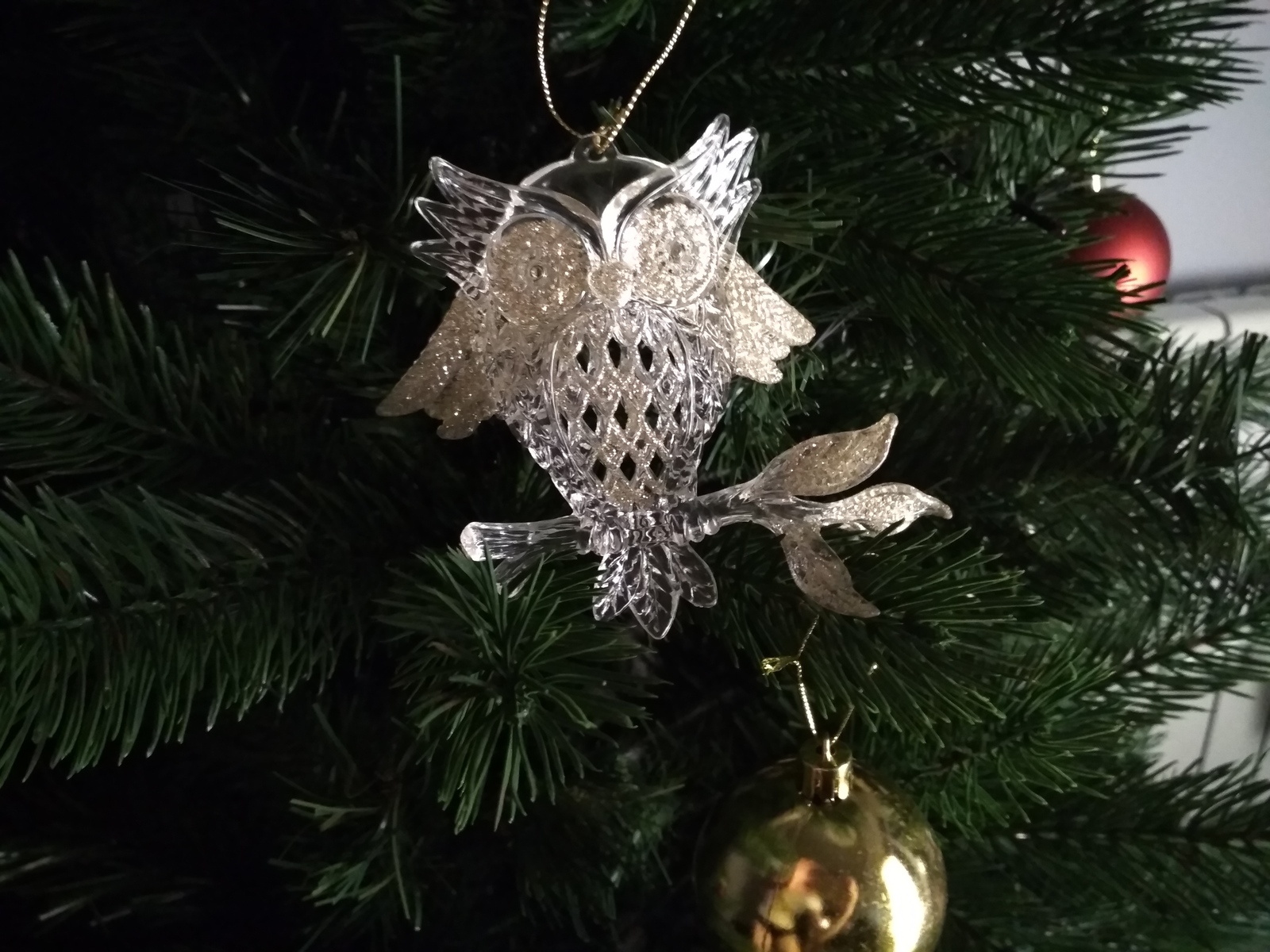Крутяшная совушка. Это уже дома на ёлке. У меня в этом году какой-то предновогодний кризис. Не хотела даже ничего на ёлку покупать. И как же меня обрадовала эта совушка! Это Букля.