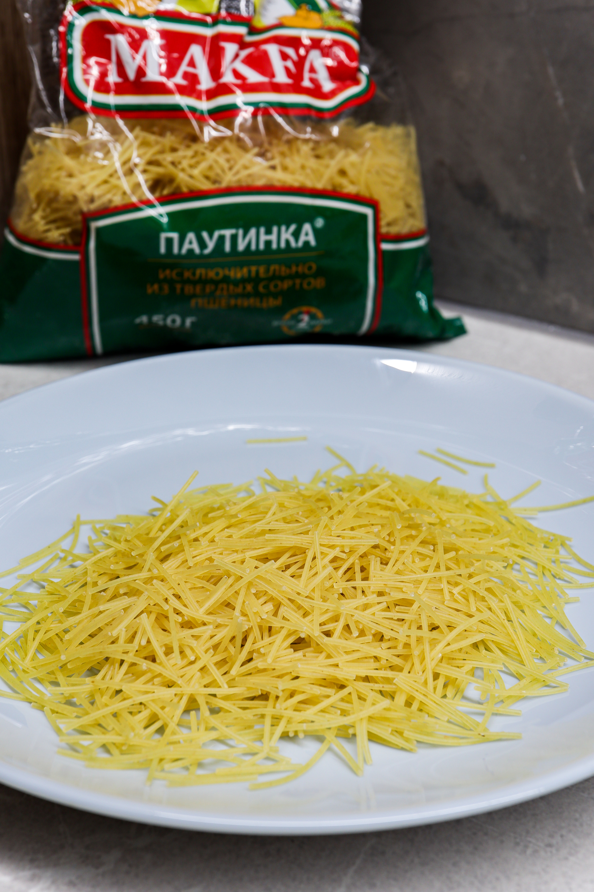 В детстве, когда я простужался мама готовила мне "лечебное" блюдо. Варился куриный бульон, отдельно отваривалась вермишель и яйца и все это смешивалось в глубокой тарелке. То, что ингредиенты готовились отдельно не давало вермишели раскиснуть и они в каждой порции была как свежая. Такая лапша, приправленная маминой заботой, быстро ставила меня на ноги. Теперь у меня свои дети и они тоже с удовольствием едят такую лапшу, да и я не упускаю возможности употребить пару порций. Еще ее засыпаем как заправку в супы.