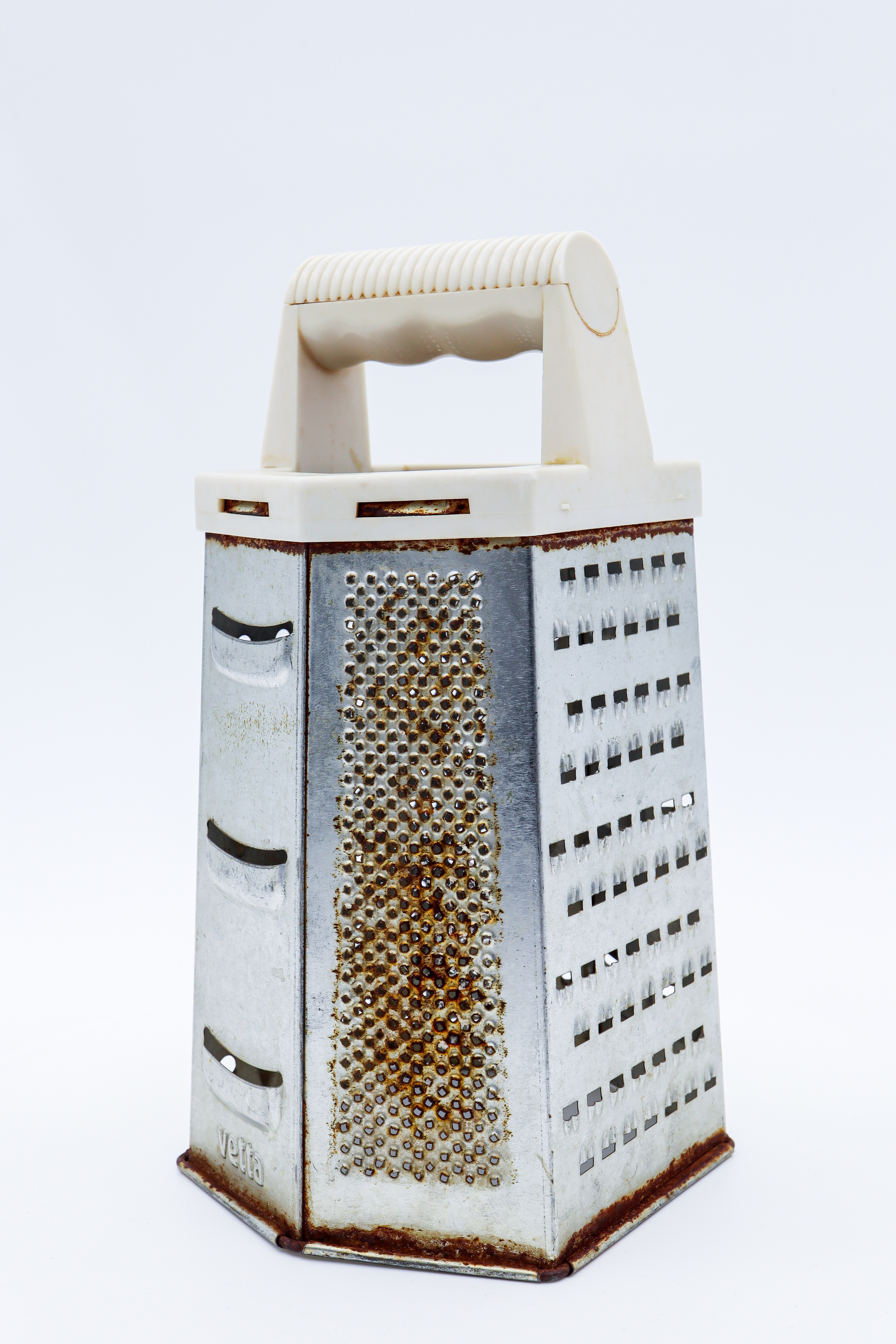 Эта терка старая, ржавая и просто дожидается своей зеленой мили в столе, ей на замену уже давно пришла новая, блестящая.