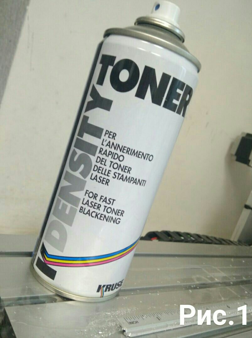 Из химии минимальный набор это железо хлористое или персульфат аммония , сода кальцинированная , топовый набор содержит аэрозоли "TONER" и "TRANSPARENT" (что для чего будет ниже), гидроксид калия или любая другая мощная щёлочь , так же за место щёлочи можно работать с ацетоном .