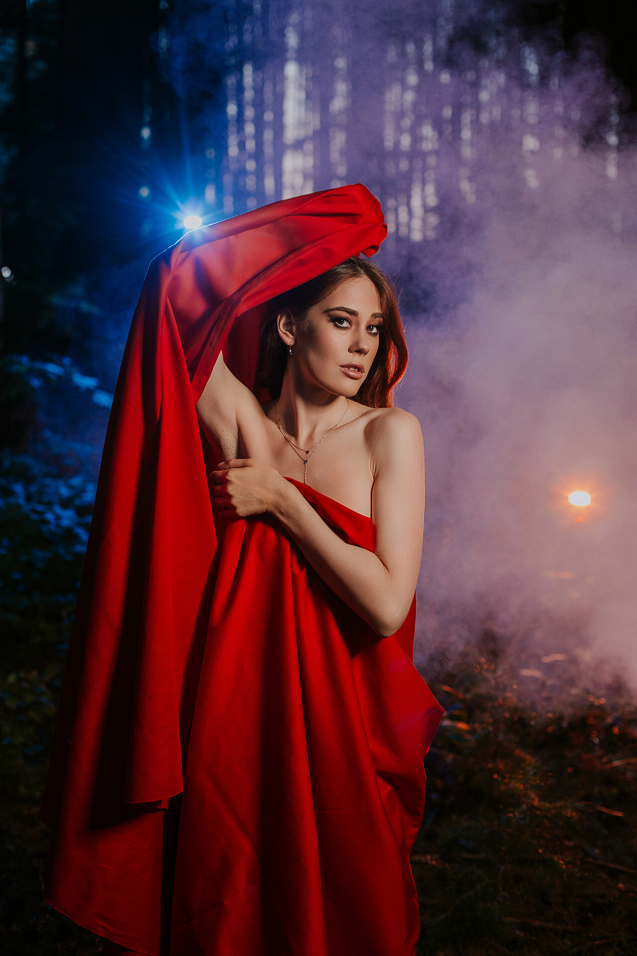Сзади две вспышки с цветными "гелями". Это такие полупрозрачные полоски, которые позволяют либо поменять цветовую температуру, либо просто окрасить цвет вспышки. Контровые вспышки, кстати самые обычные накамерные. Синхронизируется все это дело через радиосинхронизатор godox x1pro. Очень удобно, когда тебе не нужно бегать и менять настройки и все это делаешь прямо на месте.